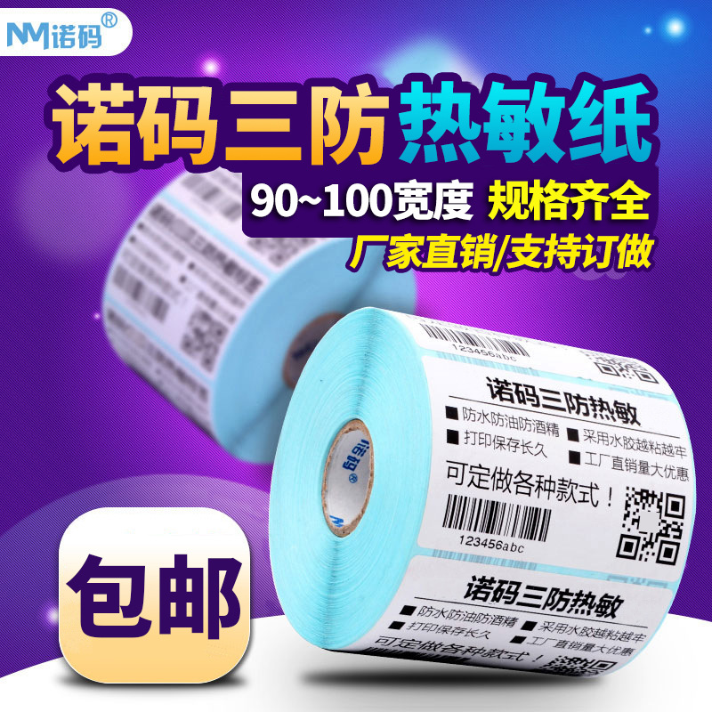 ノーコードサーマルラベル印刷紙90-100*70 80三防糊バーコードプリンタシール速売通