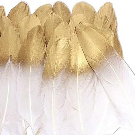 在庫あり 金色の大きな羽根 15-20cm ゴールドスプレー仕上げ 羽根 DIY 手芸装飾 塗装羽根 飾り材