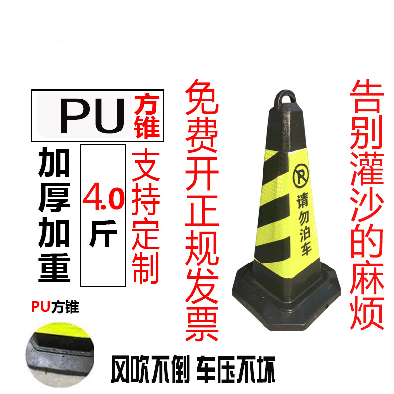 pu路锥70CM橡胶提环方锥加重反光锥桶路障雪糕筒锥形桶警示桩