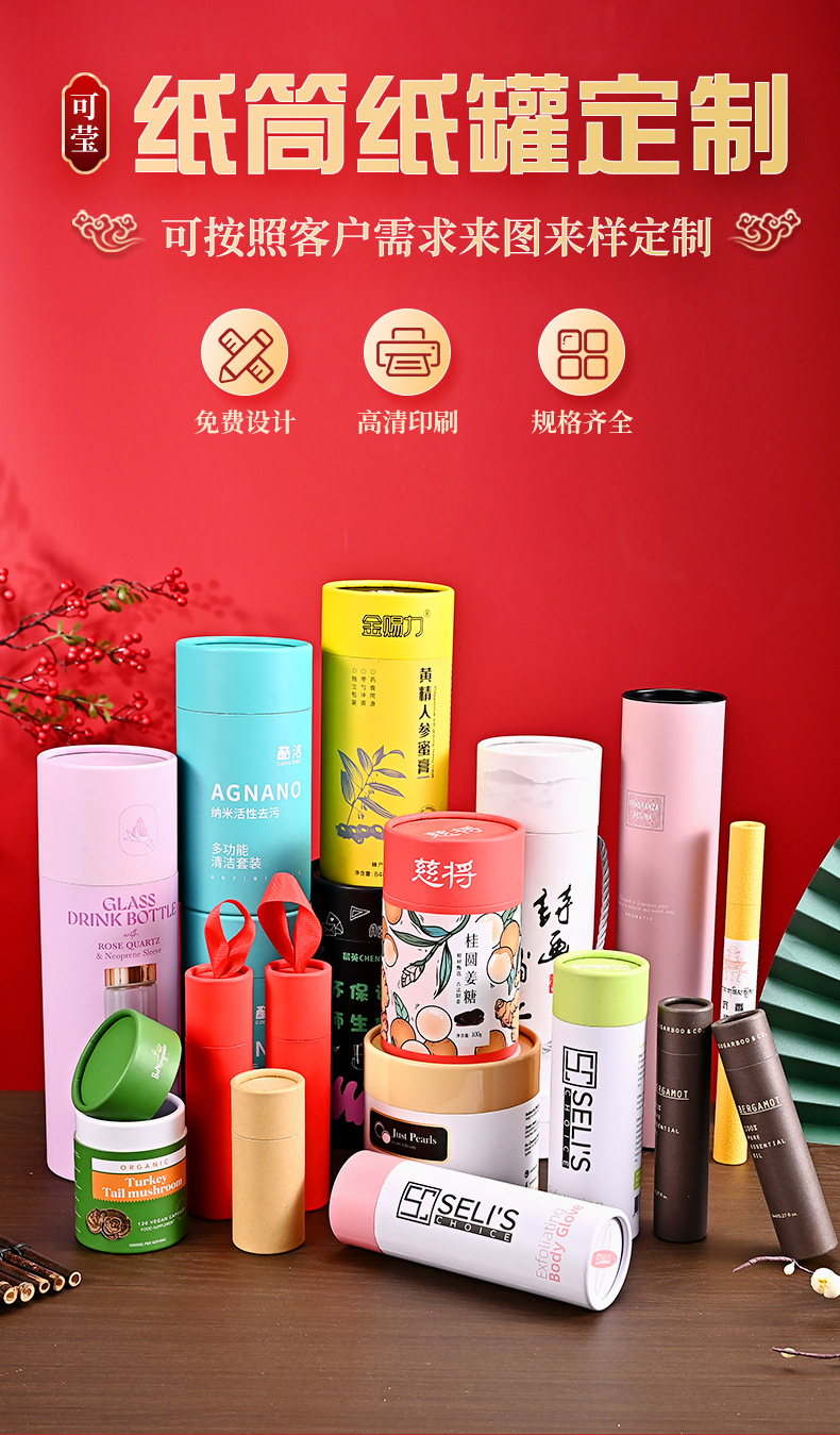 化粧品対聯紙缶茶葉包装紙缶広告カレンダー箔押し紙筒プレゼント紙缶カスタム