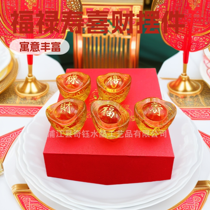 メーカーは黄水晶瑠璃金元宝福禄寿喜財家庭の祝日装飾品の卸売りを提供しています。