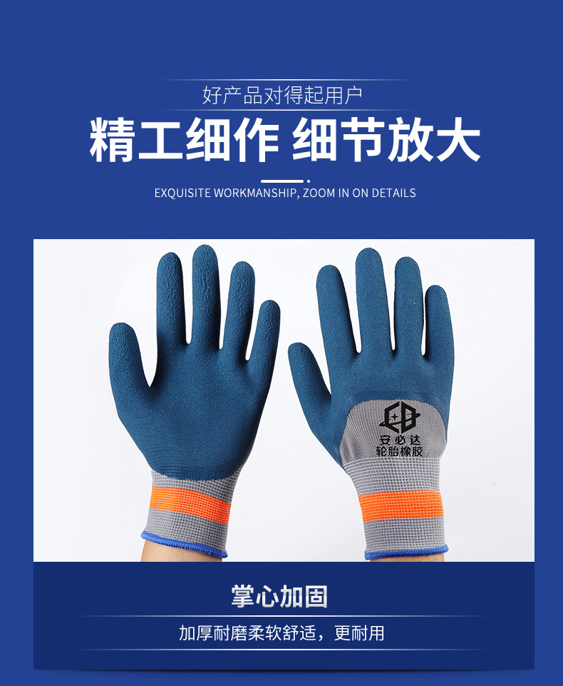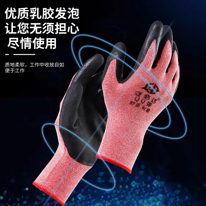 弾力王手袋労働保護耐摩耗作業現場の仕事ラテックステープ通気ゴム薄手労働滑り止め