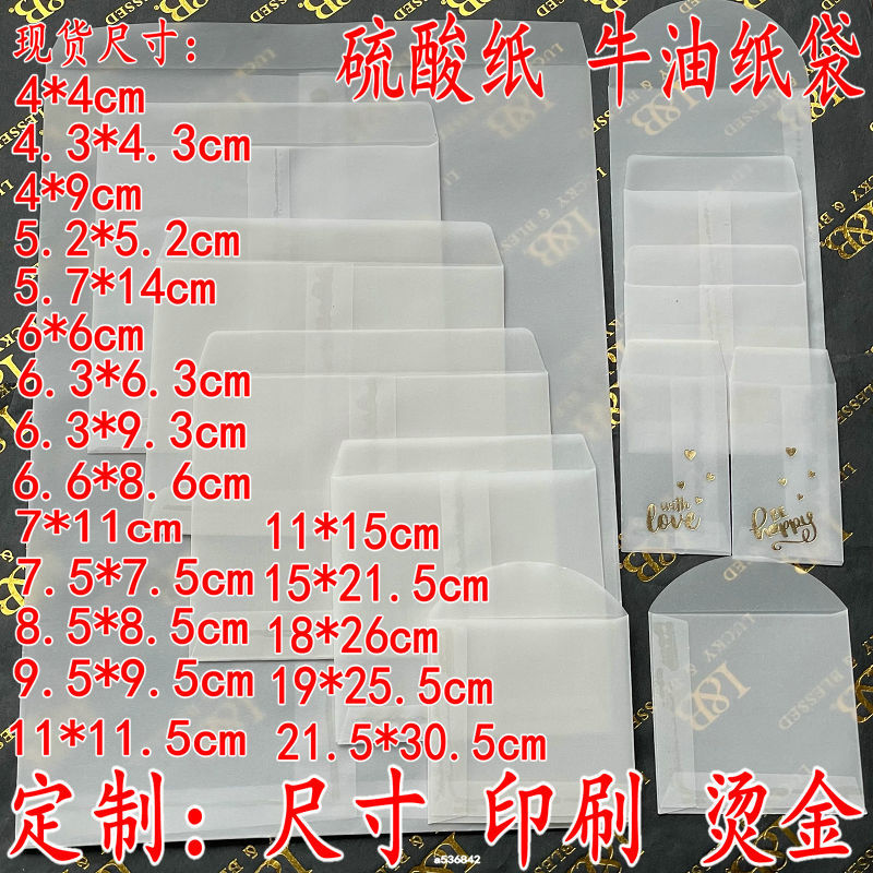 硫酸纸牛油纸袋镜片光学电子针线纽扣金银首饰种子邮票盘香信封袋