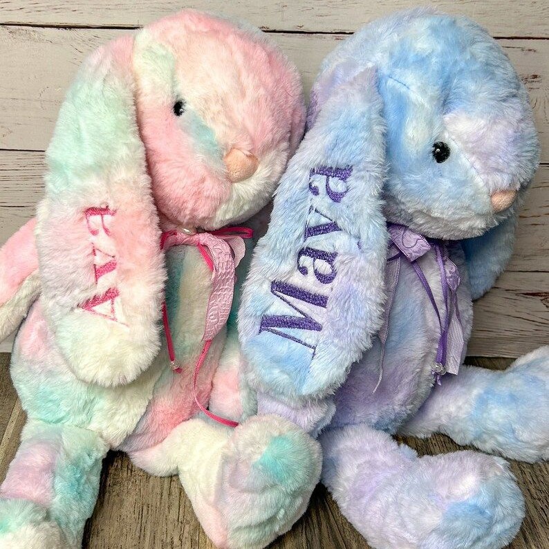 Etsy個性刺繍モデルの新型カラーリングのウサギの人形のぬいぐるみがぼうっとしていて可愛いウサギのウサギの女性が枕を抱いています。