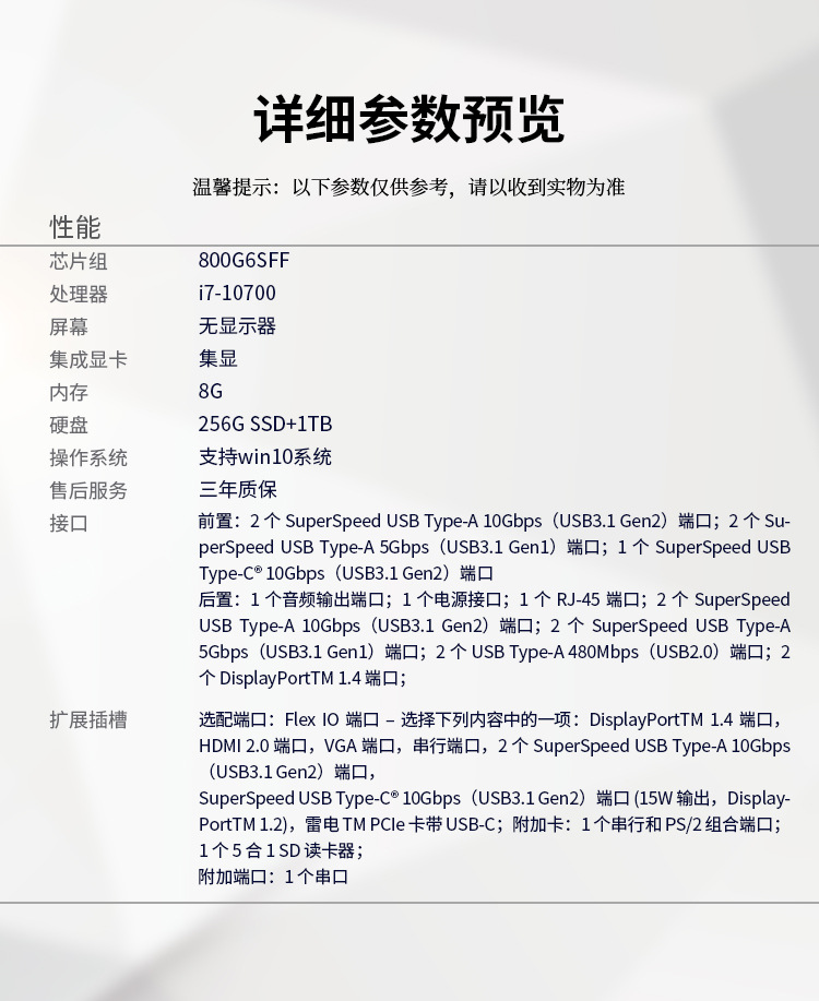 モデル I3-10100 8G256SSD,I5-10500 8G 256SSD,I5-10500 8G 256SSD+1T (カスタマイズ),I7-10700 8G 256SSD+1T