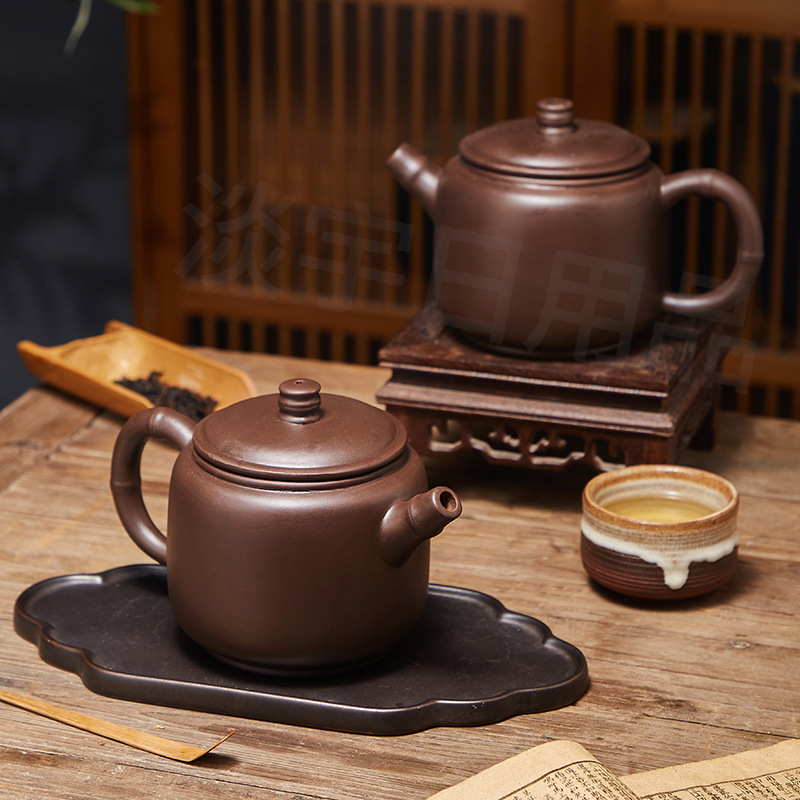 紫砂壺手作り大容量広口茶壺潮州朱泥功夫茶器;大口漢瓦開口泡茶壺