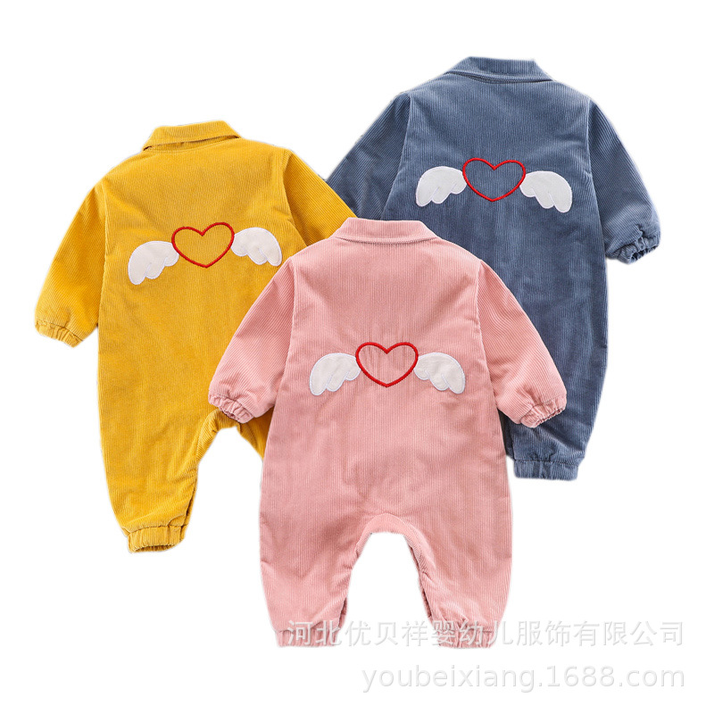 春秋の新作、二重構造のワンピースベビー服、男女兼用、ベビー用アウターウェア、コーデュロイ長袖ロンパース