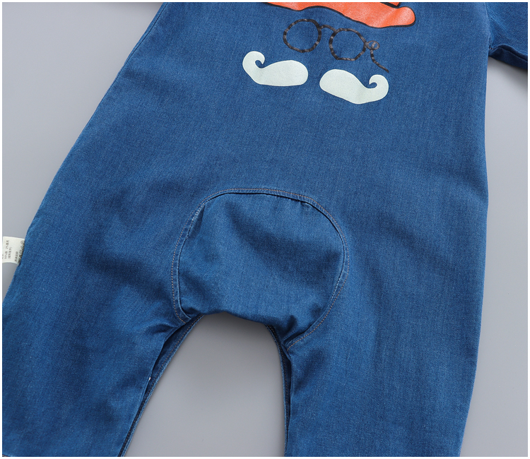 赤ちゃんのデニムのロンパース0-1-2歳の赤ちゃんの連体服の微弾力性のアニメ