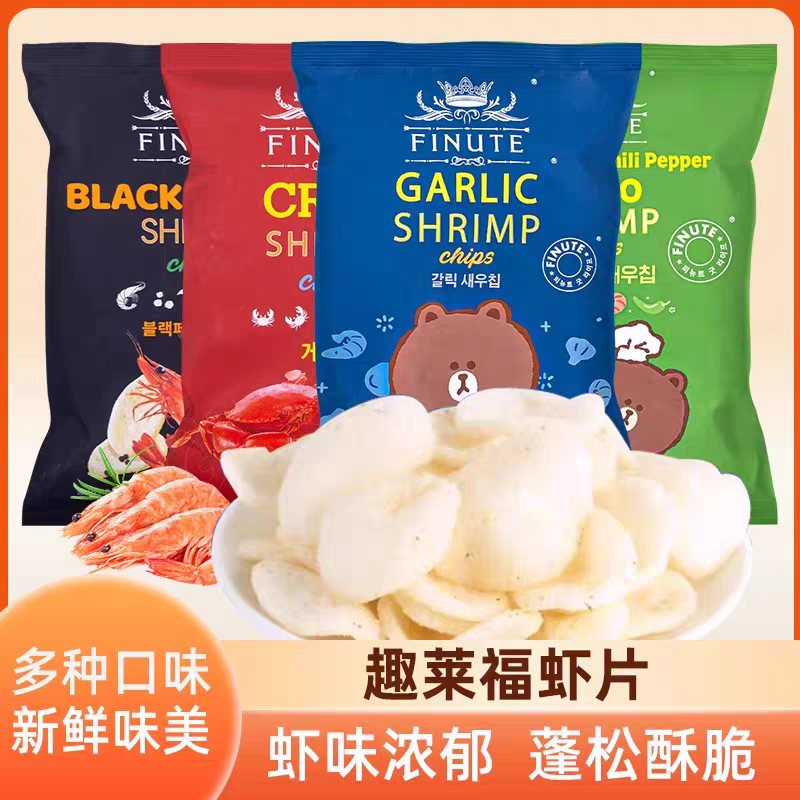 韓国輸入FINUTE趣味莱福袋入り海老片コンビニ海外膨化ネット赤間食卸売り82g