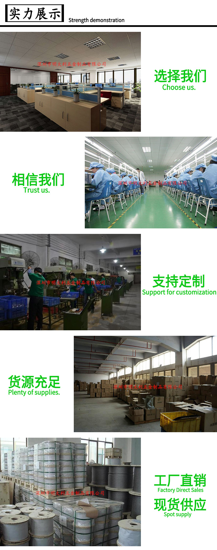 生产加工各种钢丝绳锁线器,卡线器,吊码固定调节器,挂画轨道吊绳,灯饰挂绳,LED面板灯挂绳,广告牌吊夹挂绳,展览标识牌挂线,及各种五金索具配件等等... 特别要求定制请联系卖家旺旺沟通或是致电18925263036(容生)咨询。欢迎前来参观。
