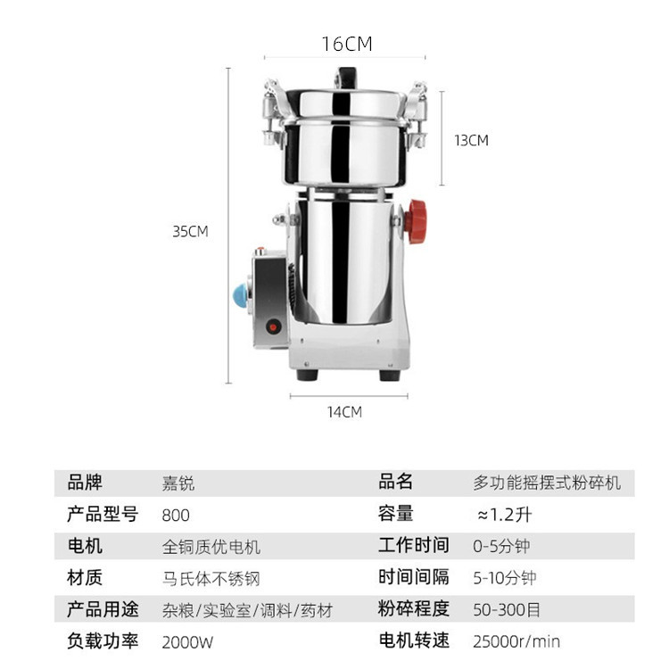 ステンレス万能粉砕機高速家庭用電動超細五穀雑穀粉砕機小型漢方薬粉砕機