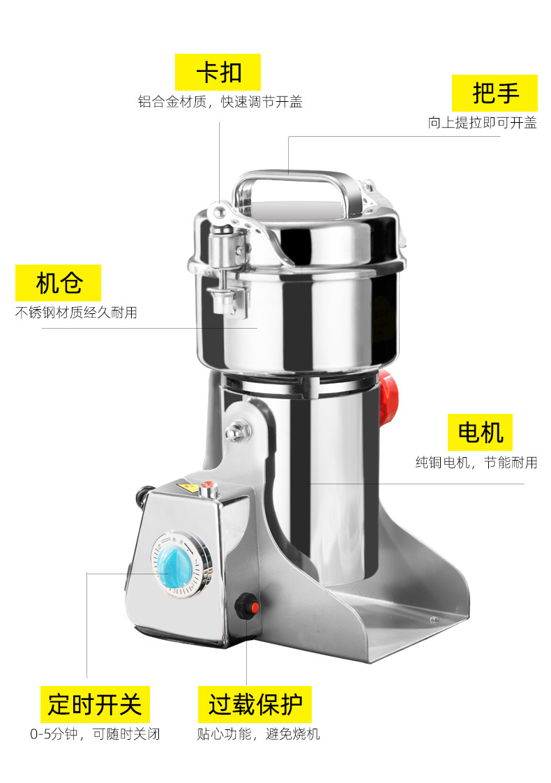 黄城家庭用漢方薬粉砕機香調味料粉砕機五穀雑穀粉砕機grinder研磨機