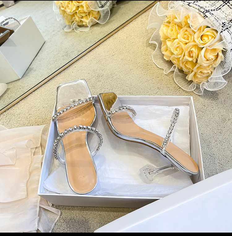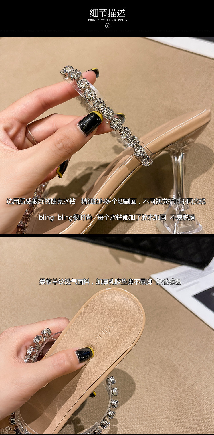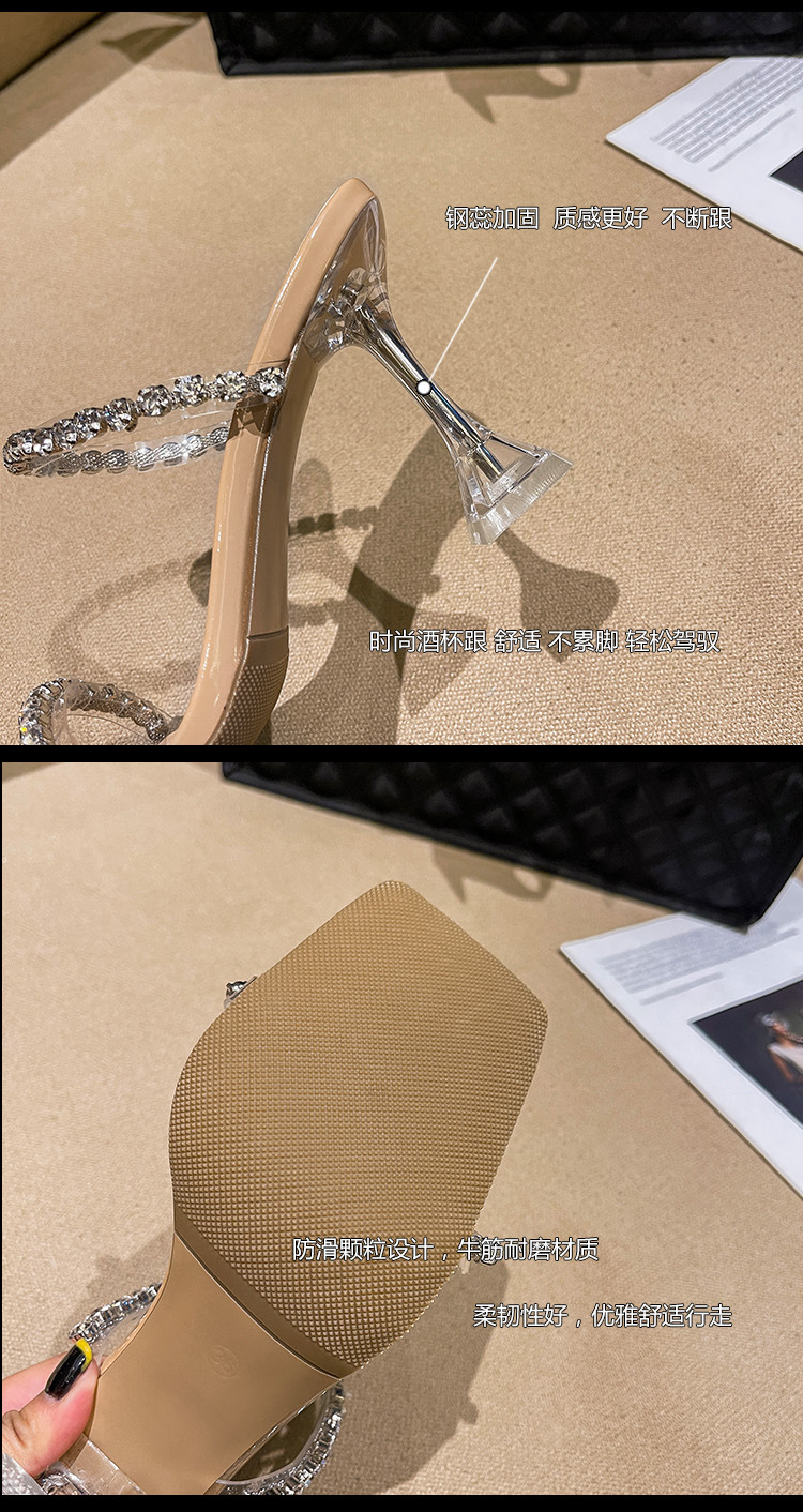 透明高跟鞋女夏2022年新款时尚网红细跟一字带凉拖鞋外穿水钻凉鞋