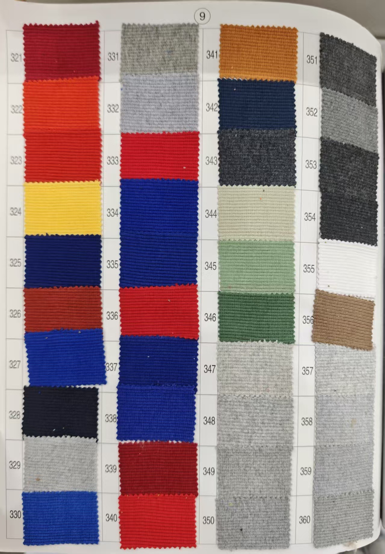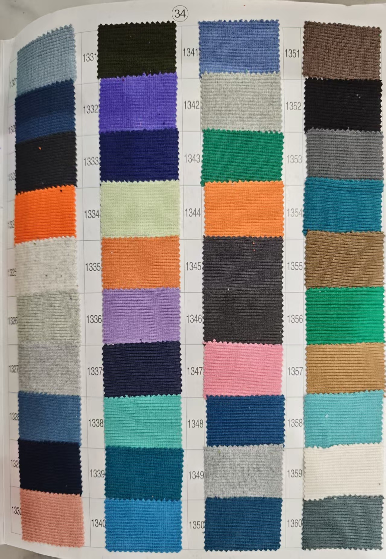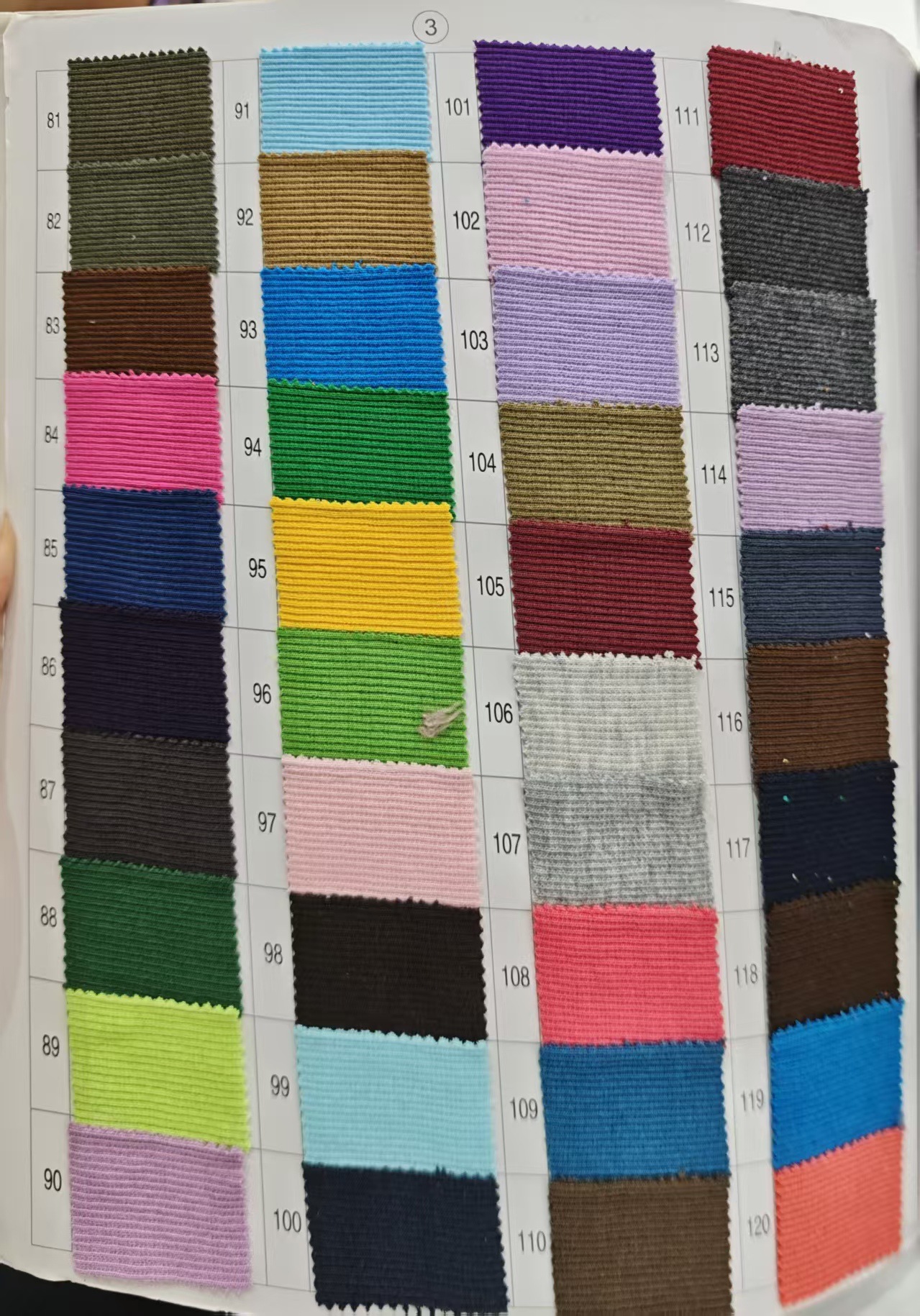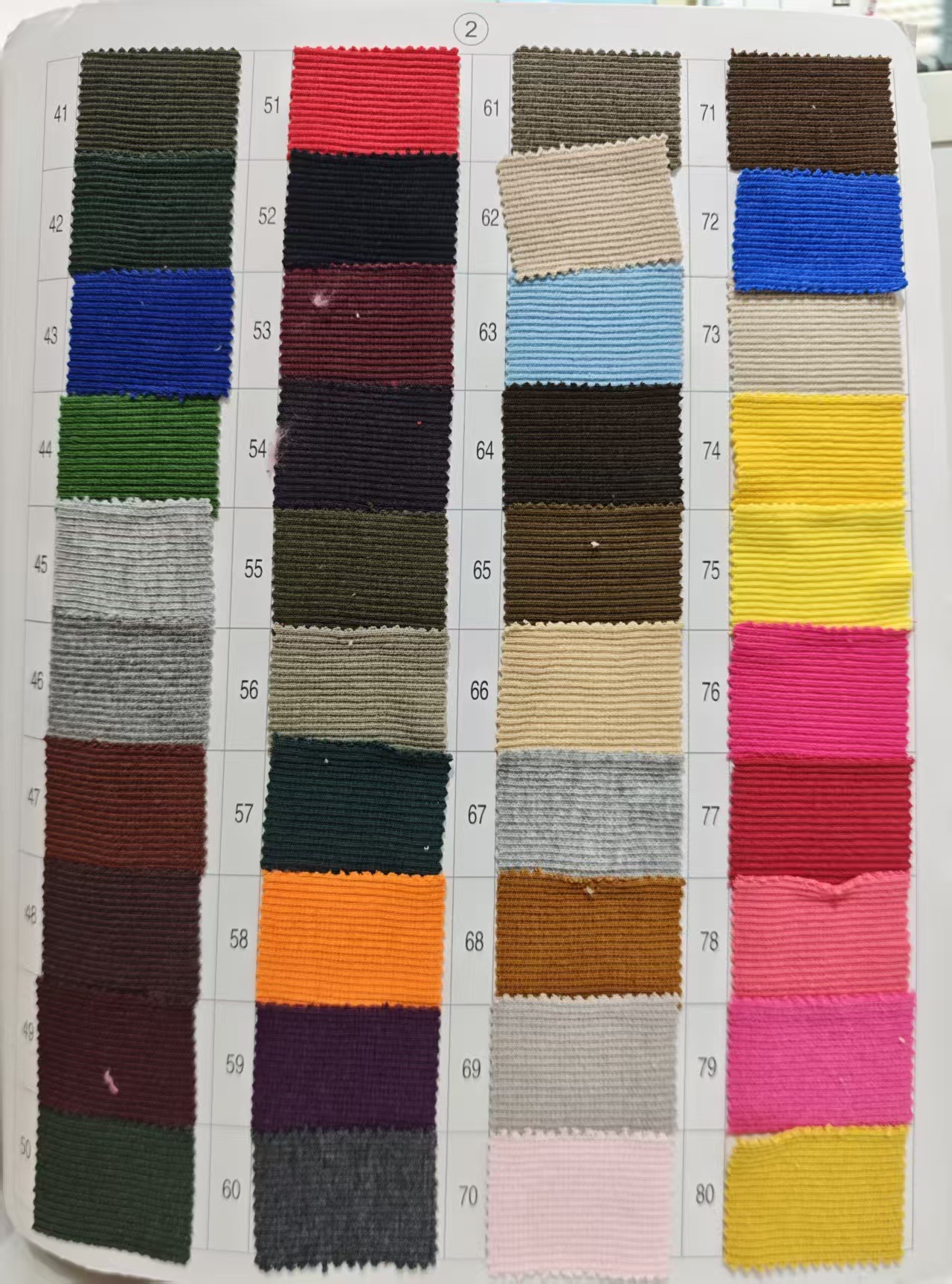 21番手、32番手のリブ生地、2×2コットン、1×1コットン、平織り、リブ編み、各種襟、袖口、裾、スウェットリブ、伸縮性のあるリブ