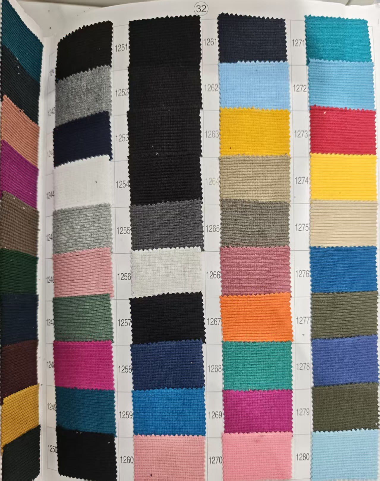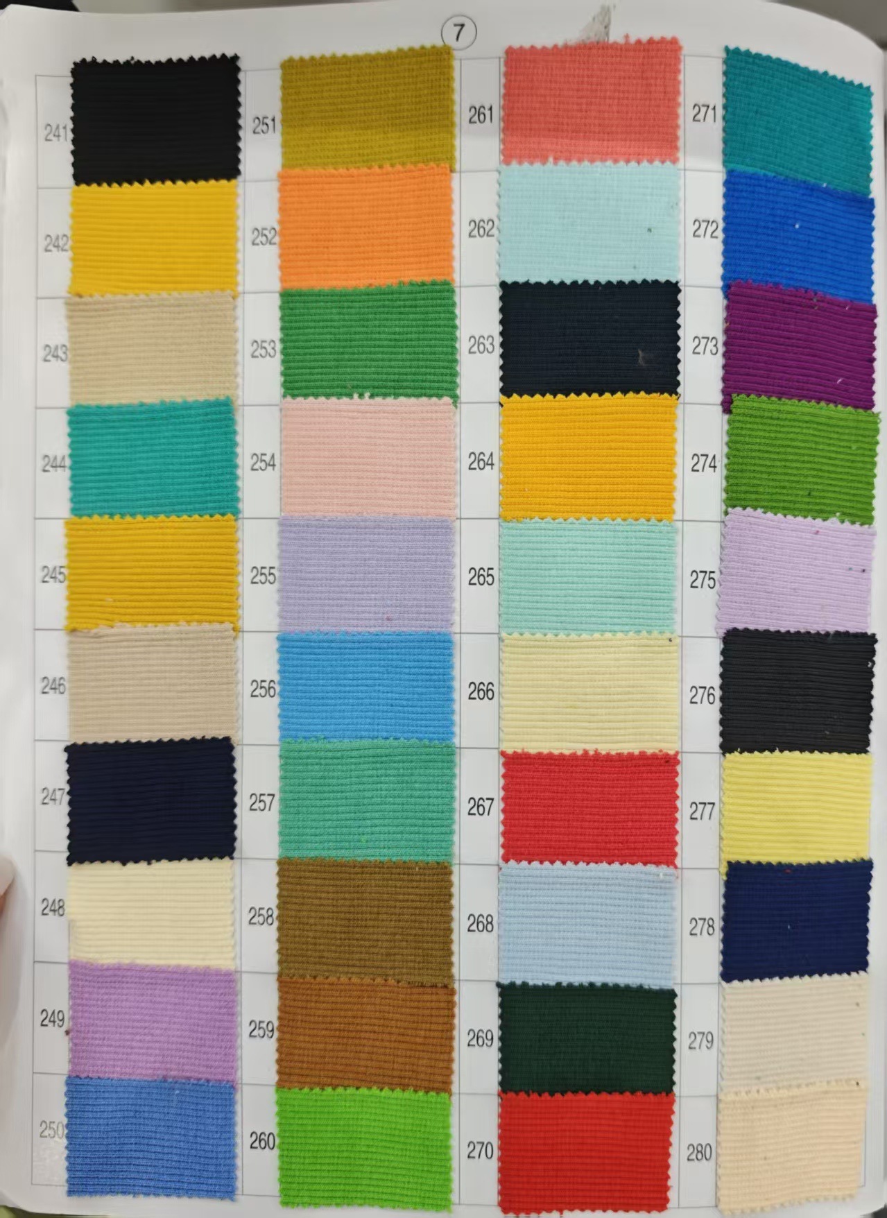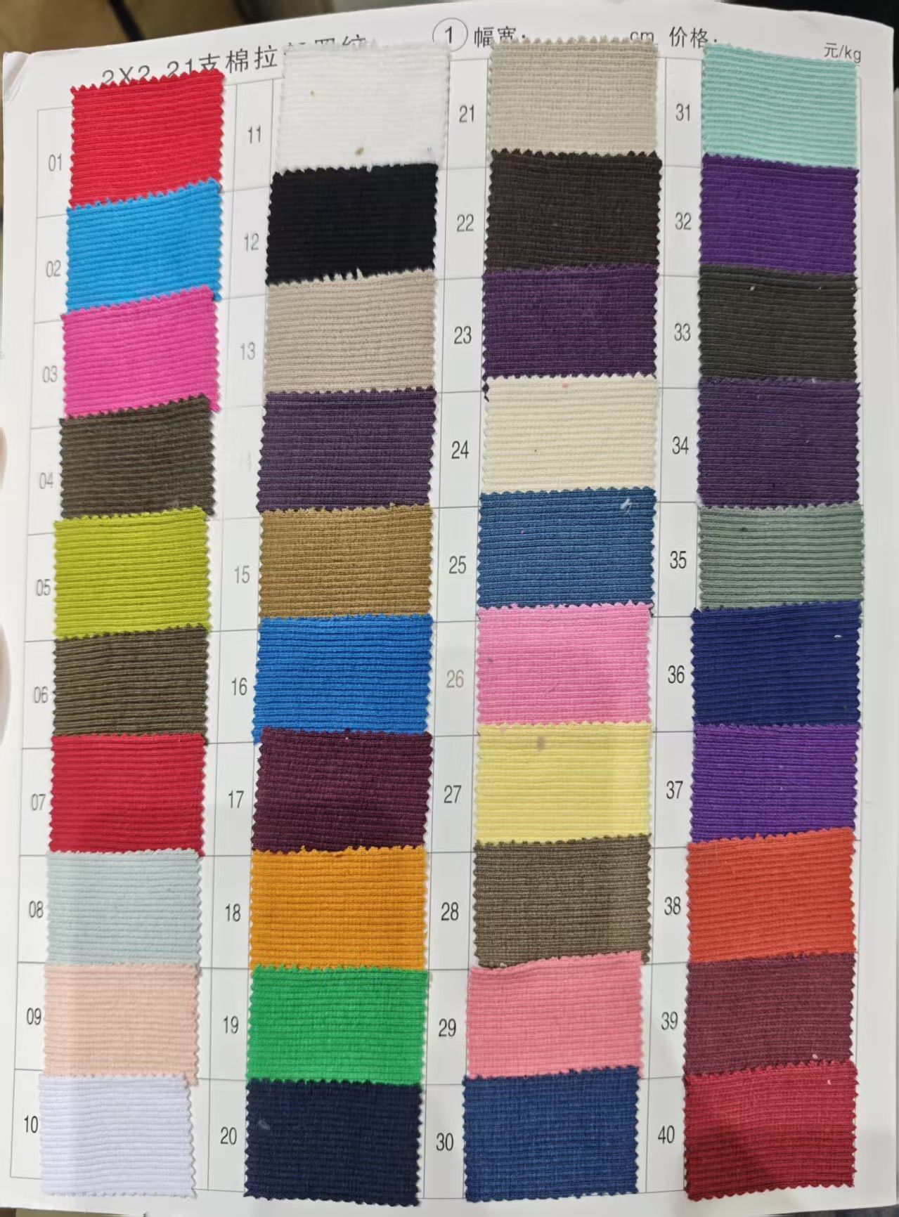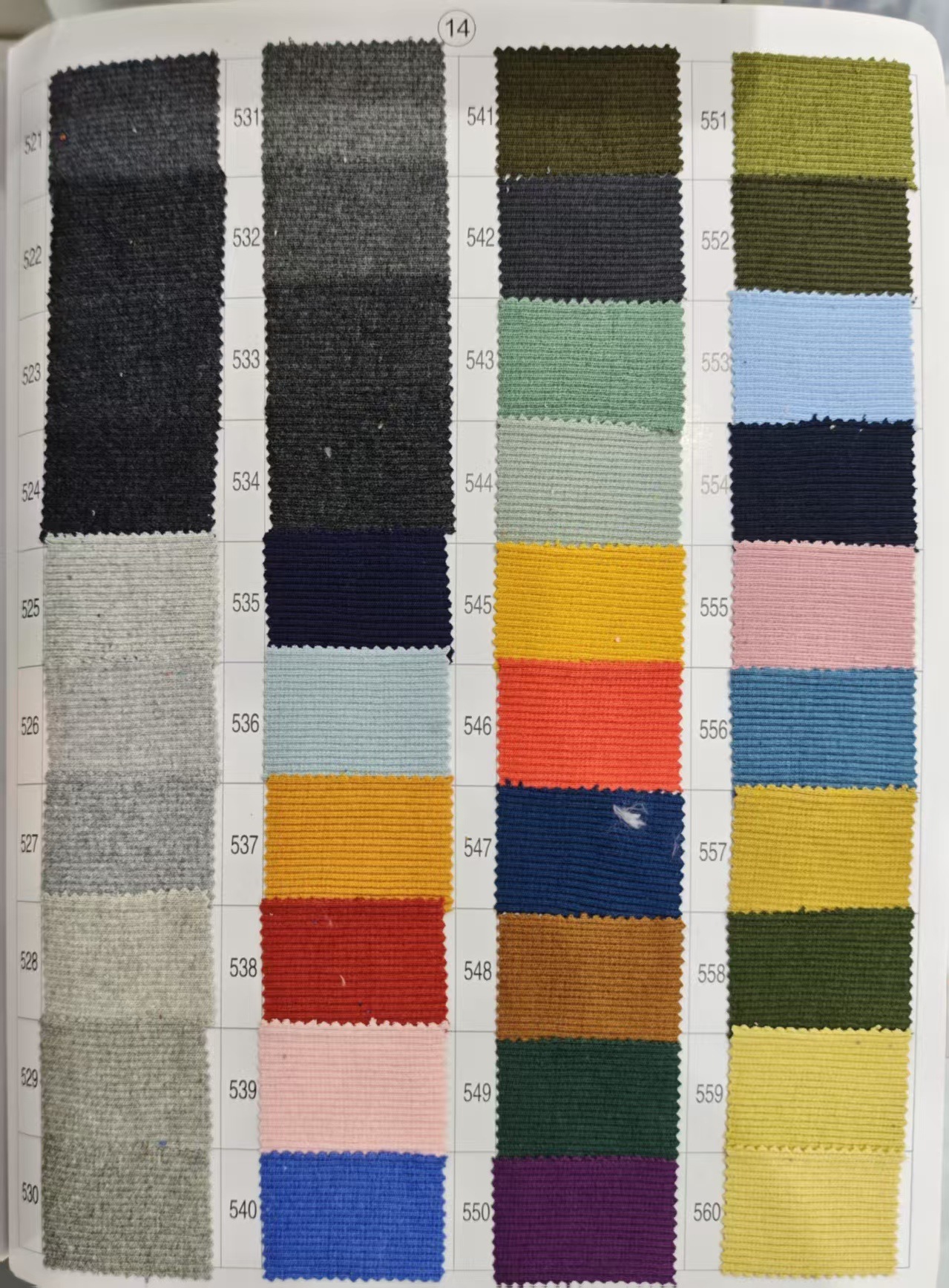 21番手、32番手のリブ生地、2×2コットン、1×1コットン、平織り、リブ編み、各種襟、袖口、裾、スウェットリブ、伸縮性のあるリブ