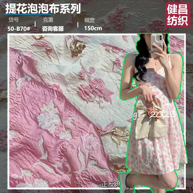 2023新しい花のピンクのバラの泡の布の浮き彫りのジャカードの生地のワンピースのコートのカバン