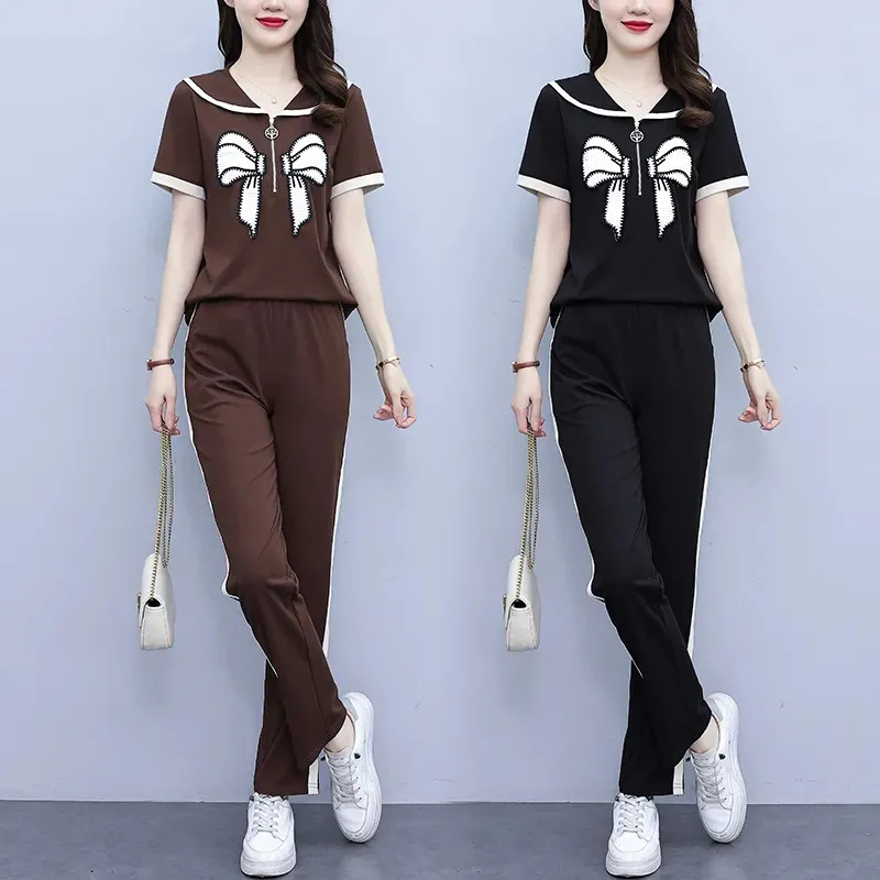 ネットで話題の蝶結びカジュアルスーツ2026夏新作ゆったりお腹カバー着痩せ効果若見えツーピースセット卸売