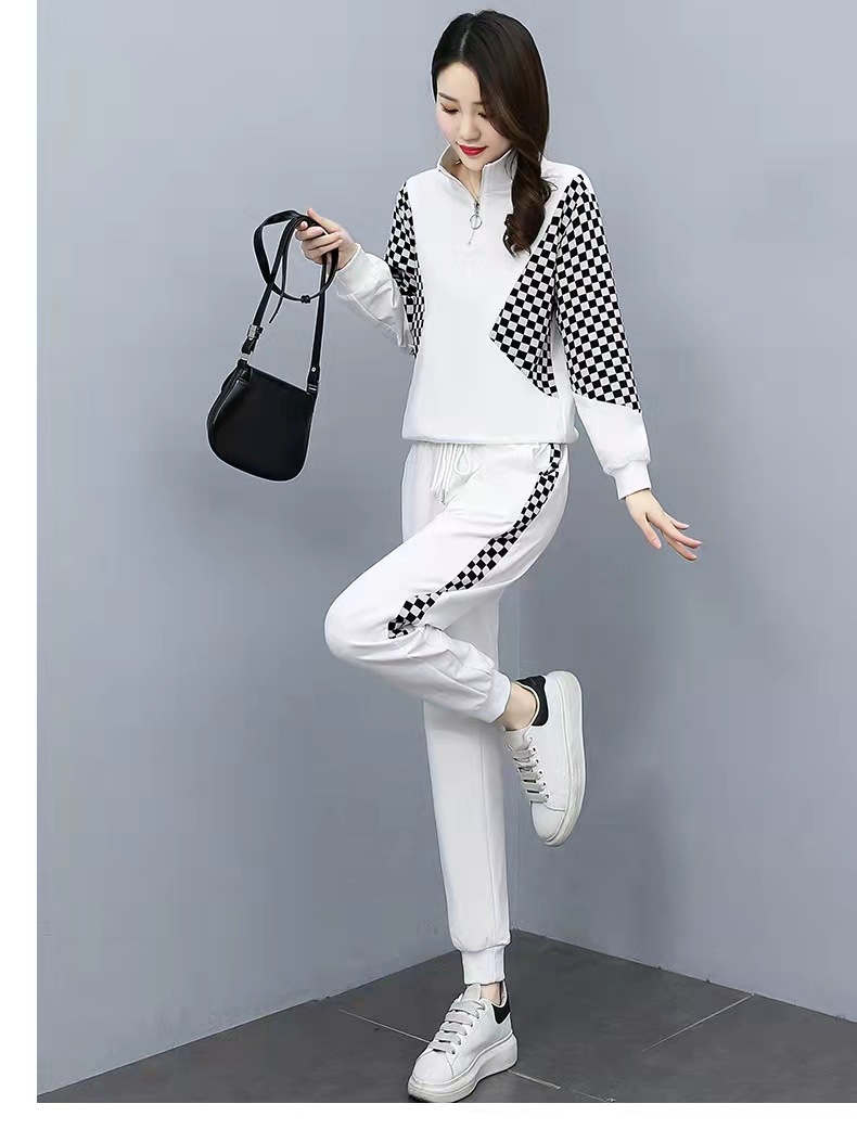 レディースカジュアルスポーツスーツ 春秋 2026年韓国版 ゆったり大きいサイズ 長袖長ズボン パッチワークツーピースセット