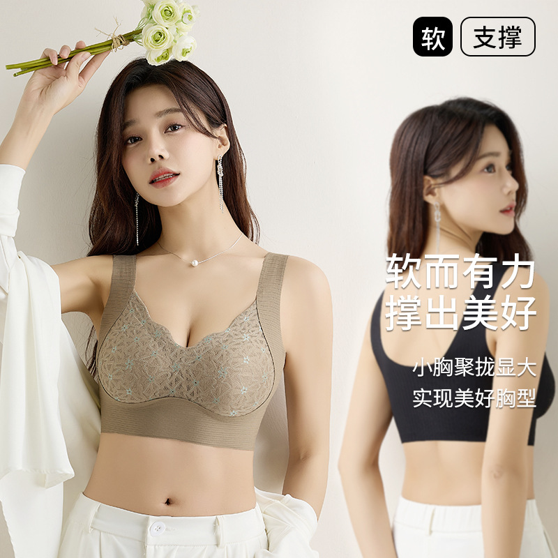 新款加大7A磨毛无钢圈提拉内衣女士固定杯聚拢舒适无痕文胸防走光