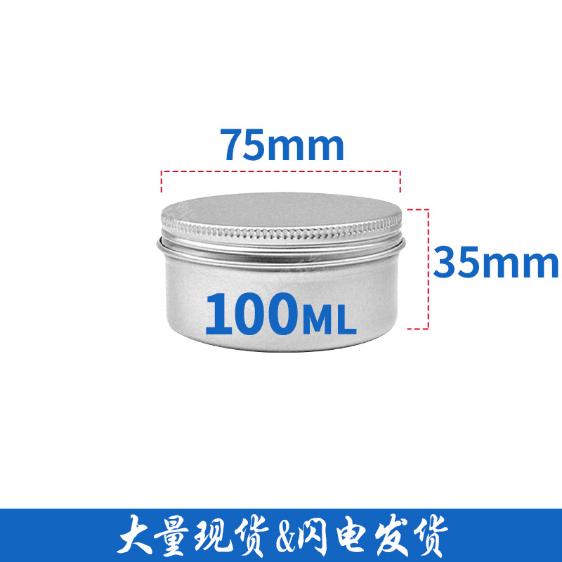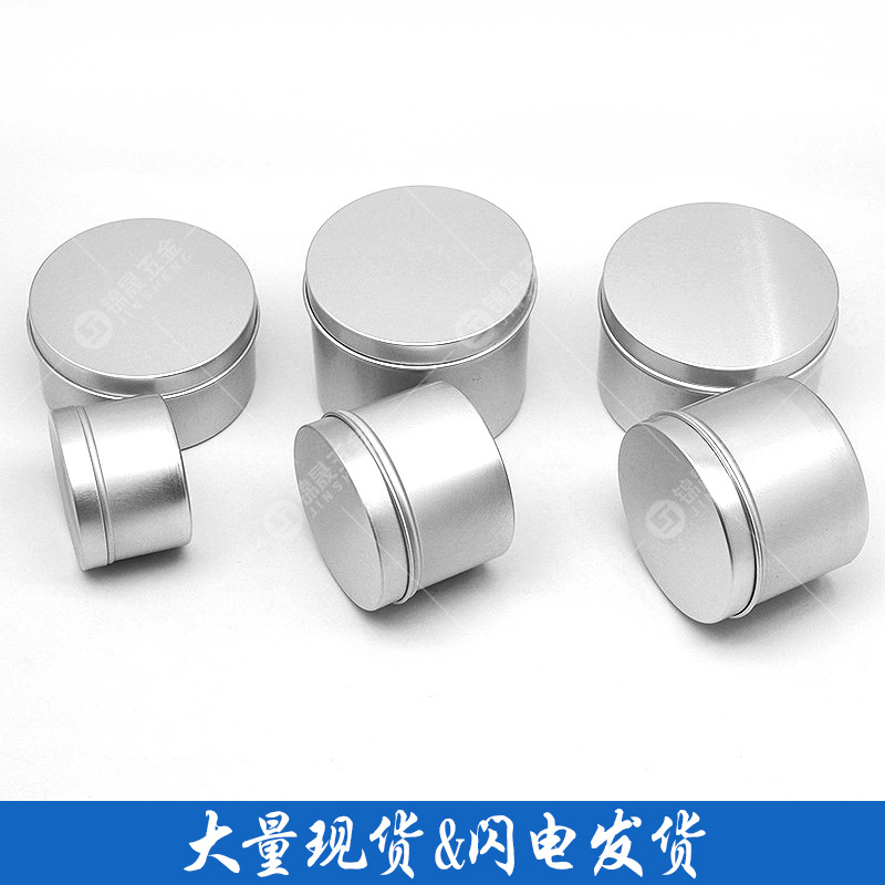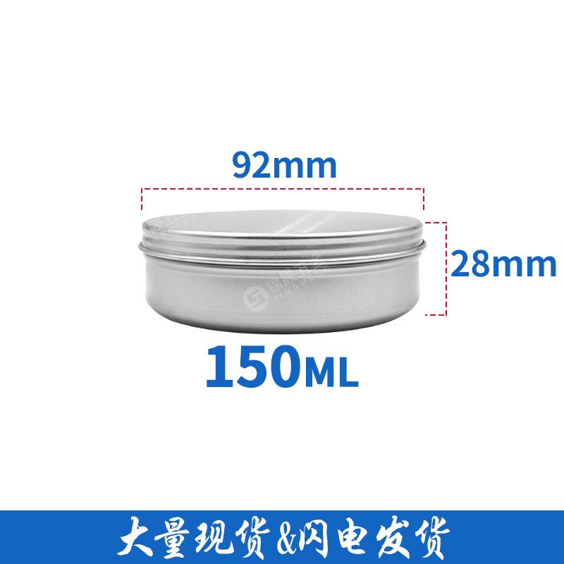 5-1000g 圆形螺纹铝盒,板材厚度0.3-0.4mm, 手工测量,以实际尺寸为准。凹底/平底,平面盖,盖内大部分配PE垫片,天地盒无PE垫片,可定制印刷与其它工艺,有大量现货!