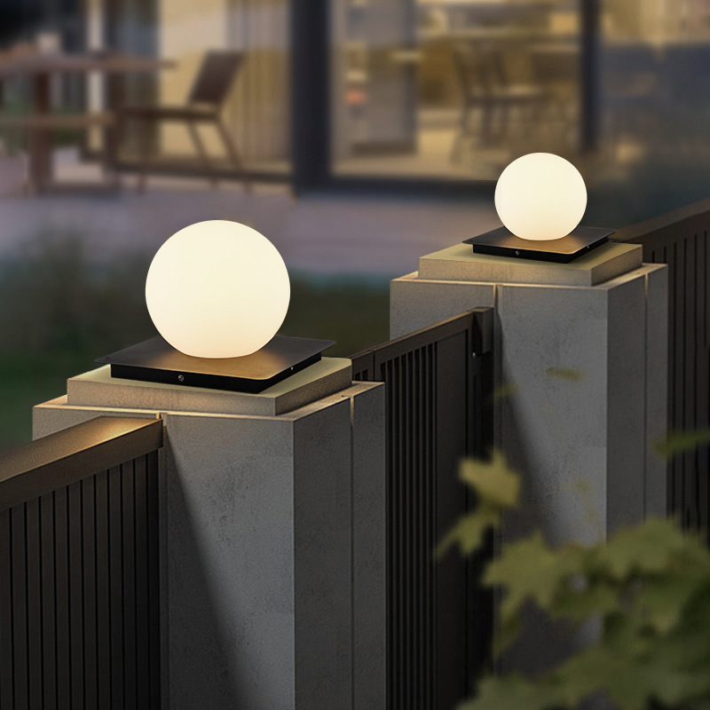 新型太陽光柱ヘッドライト屋外防水ボール月球灯庭花園別荘塀大門柱灯