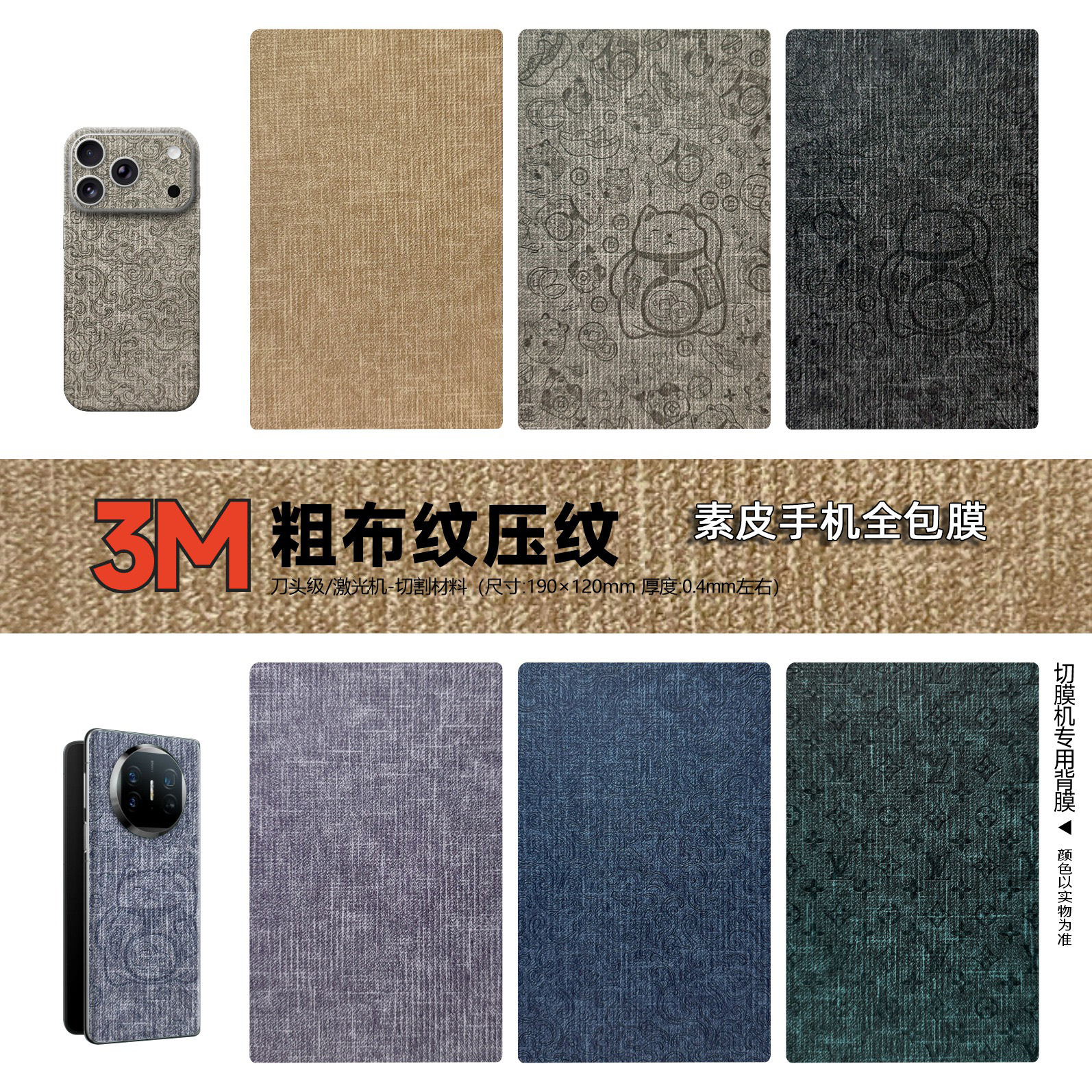 3M马年素皮彩绘手机背膜切膜机通用小羊皮纹压纹折叠屏全包膜贴纸