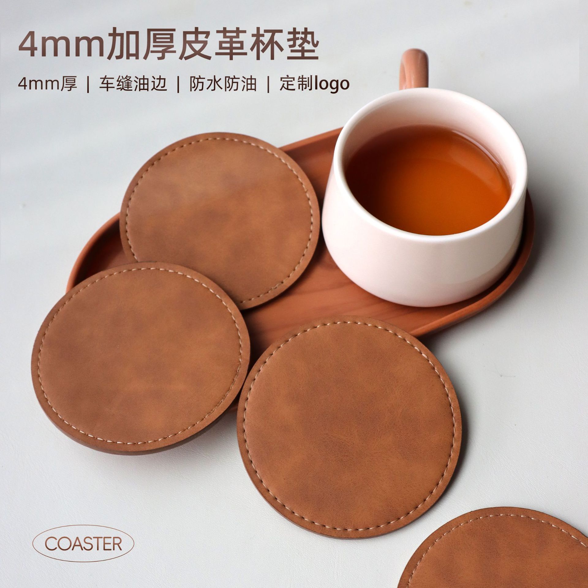 双面复古牛皮纹加厚杯垫PVC皮革圆形PU咖啡隔热垫酒店茶杯垫批发
