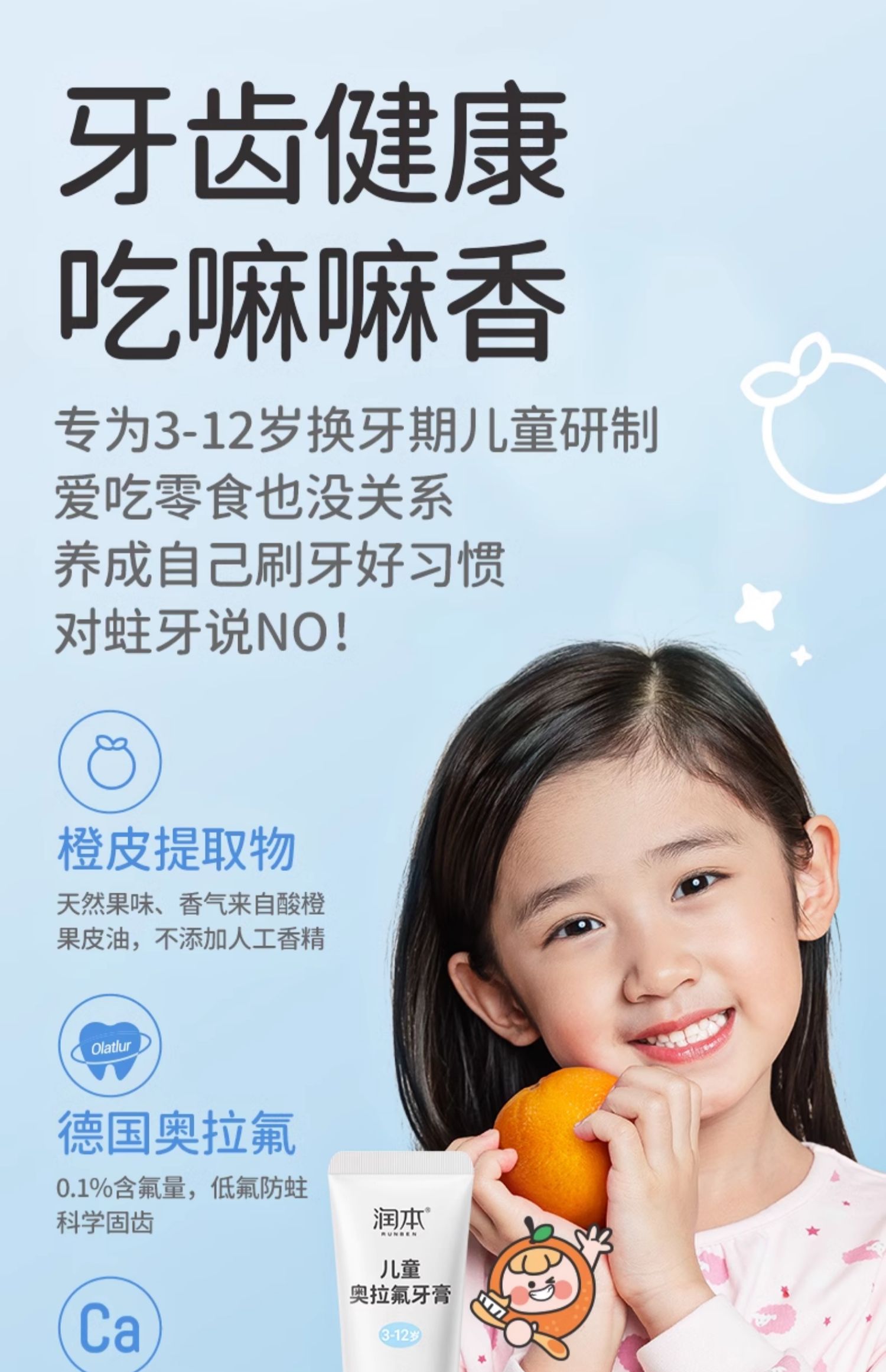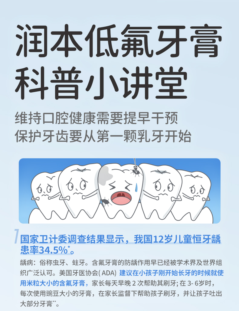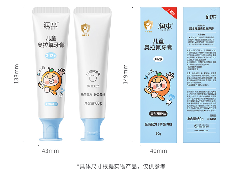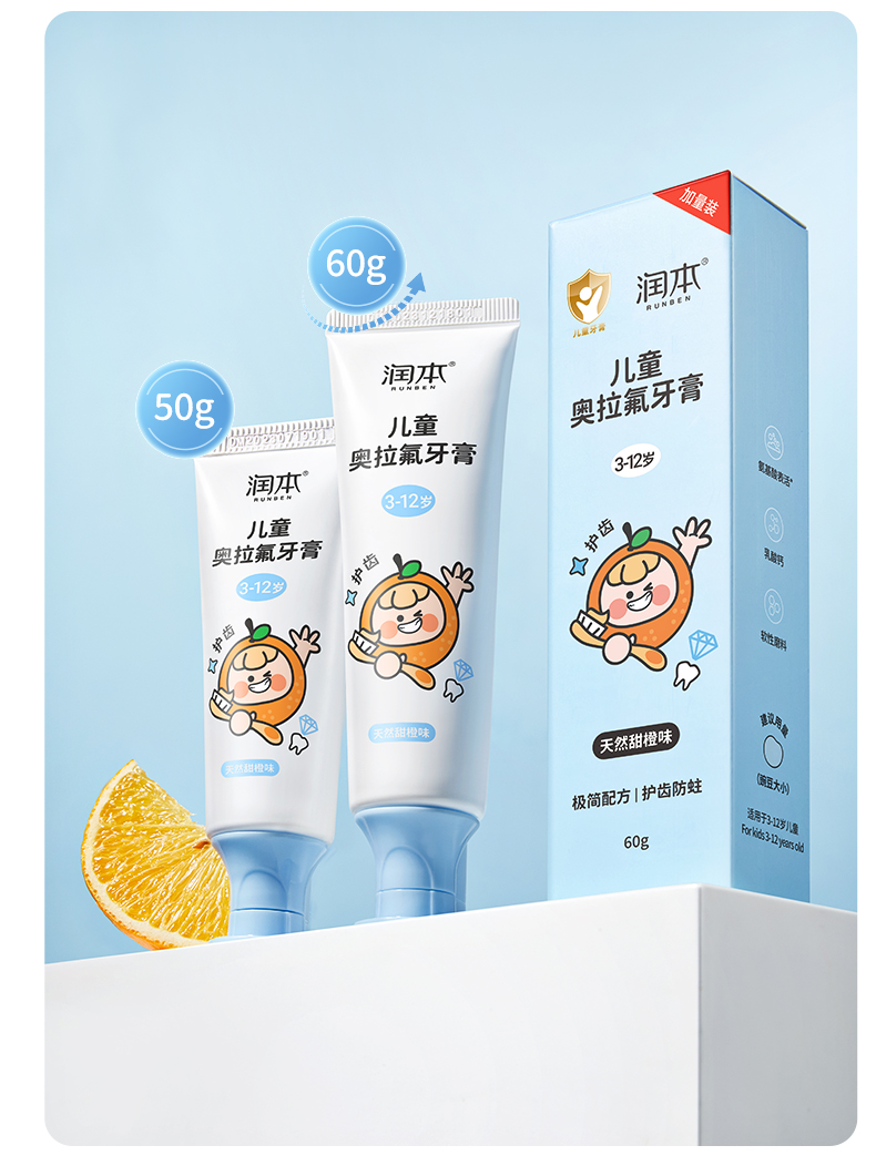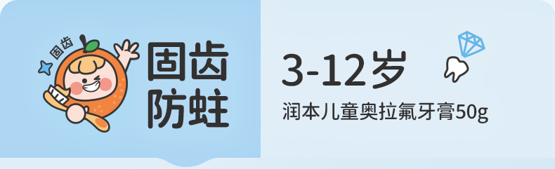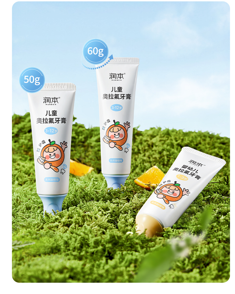 潤本奥拉フッ素子供歯磨き粉フッ素含有3-6-12歳虫歯防止低フッ素赤ちゃん入れ替え期虫歯防止