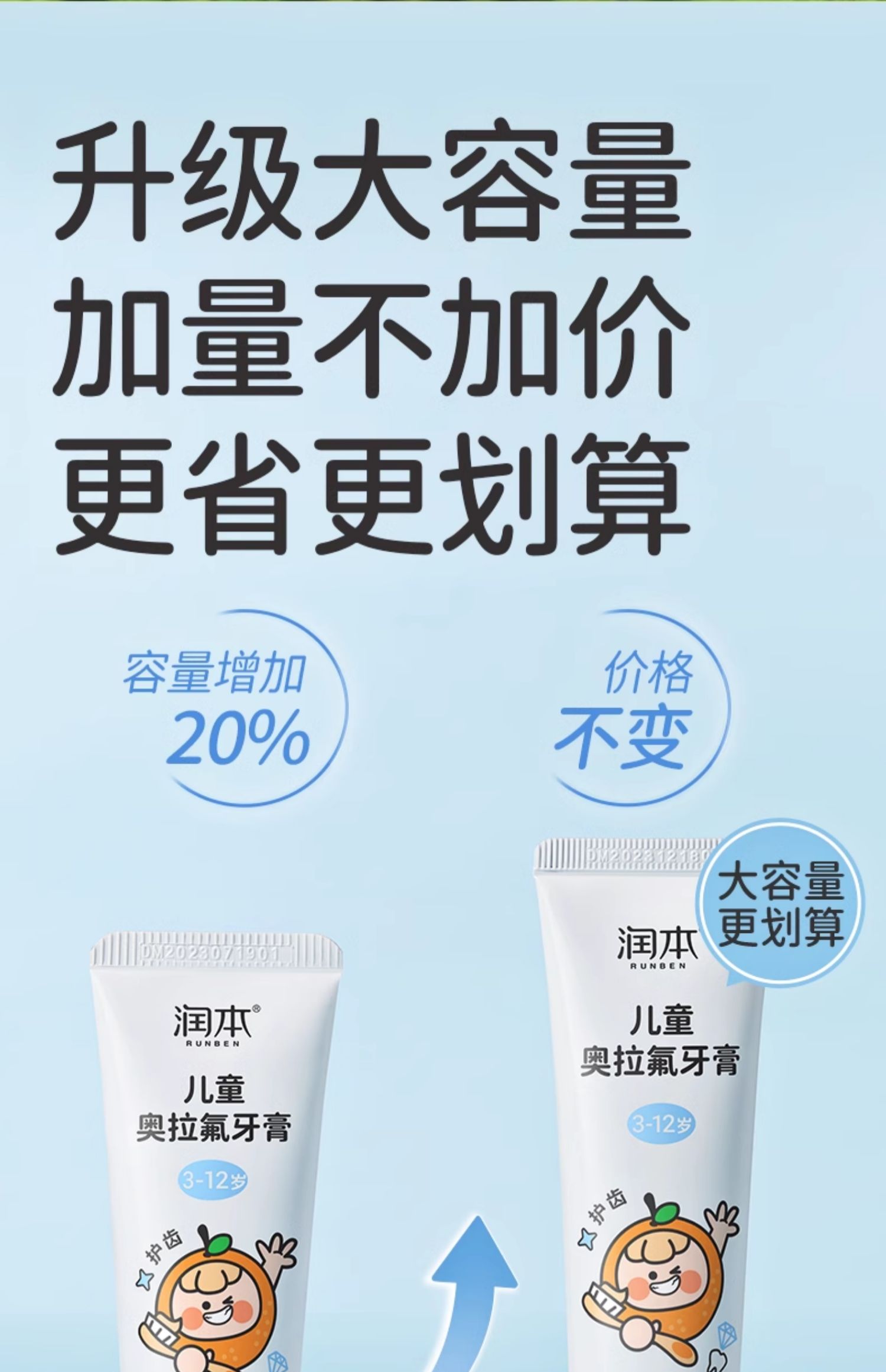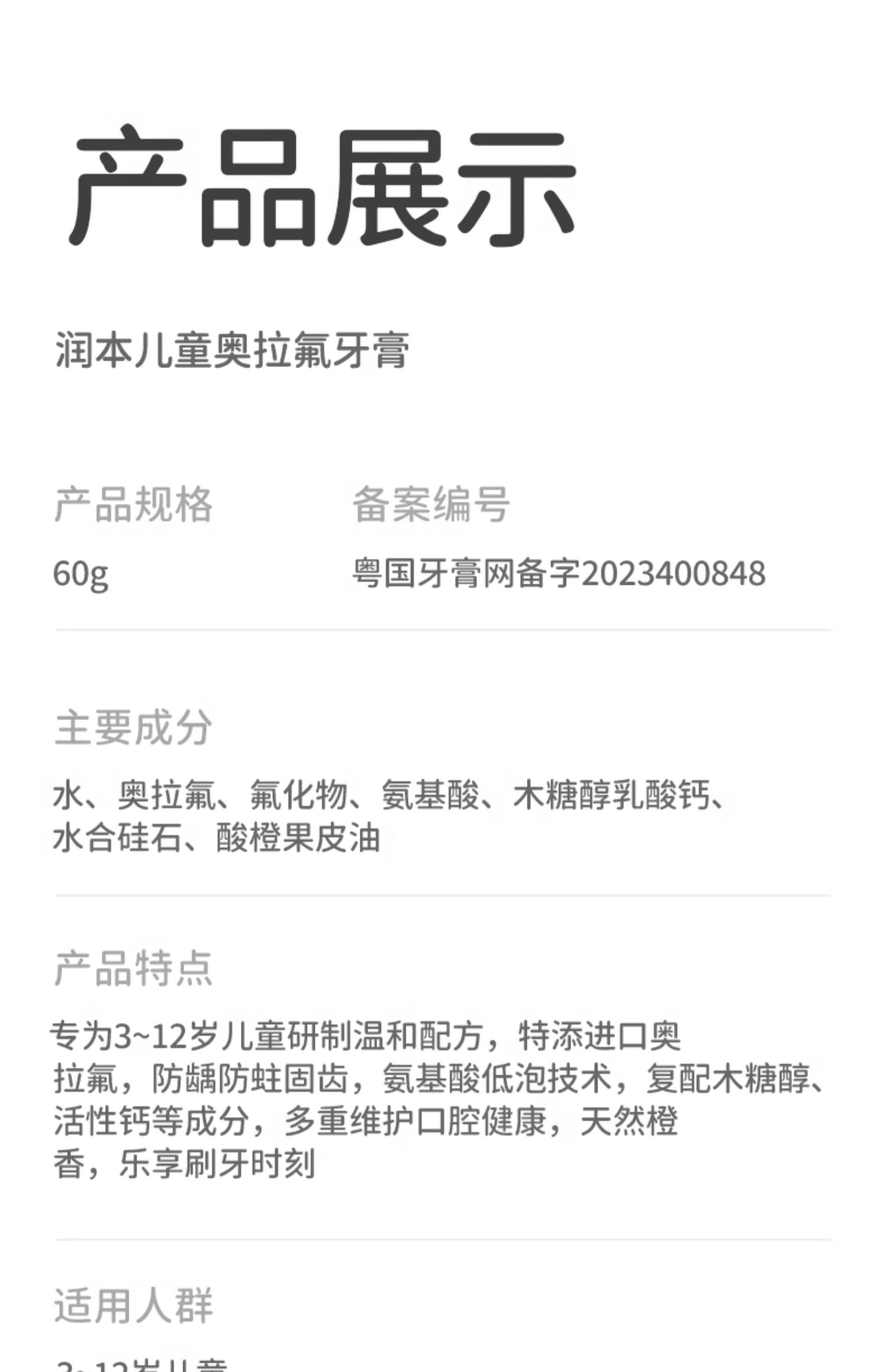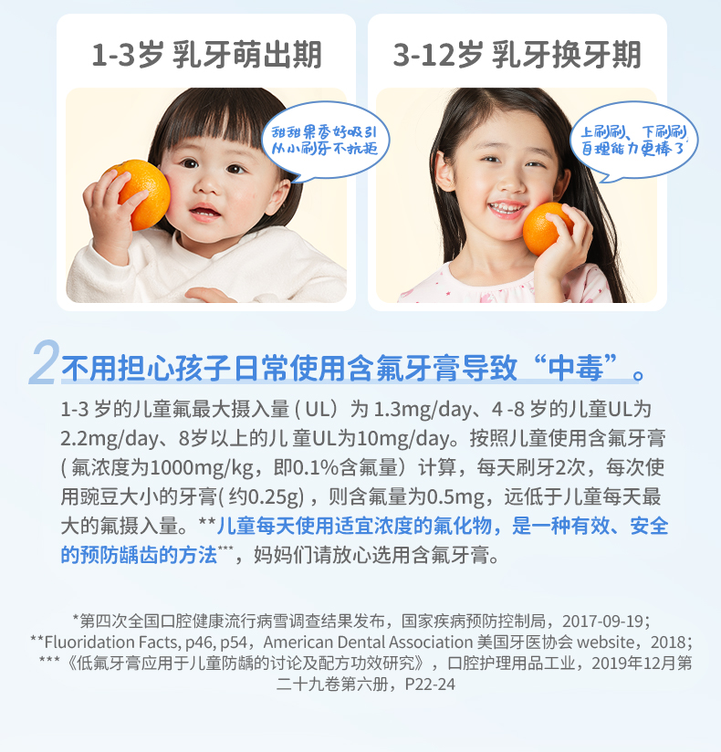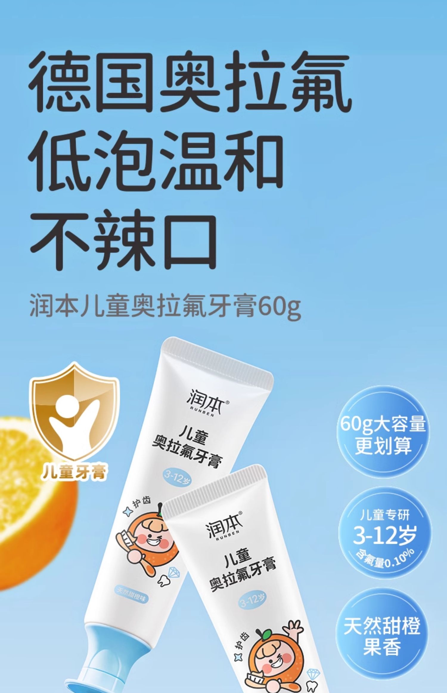 潤本奥拉フッ素子供歯磨き粉フッ素含有3-6-12歳虫歯防止低フッ素赤ちゃん入れ替え期虫歯防止
