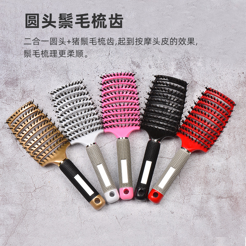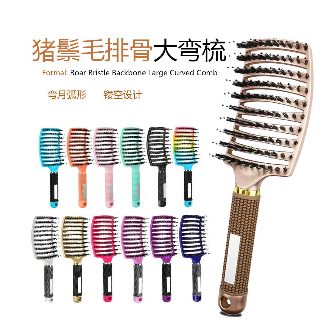 順髪櫛大曲櫛排骨櫛豚毛静電気防止曲げ型マッサージ櫛九列櫛造形カールプラスチック