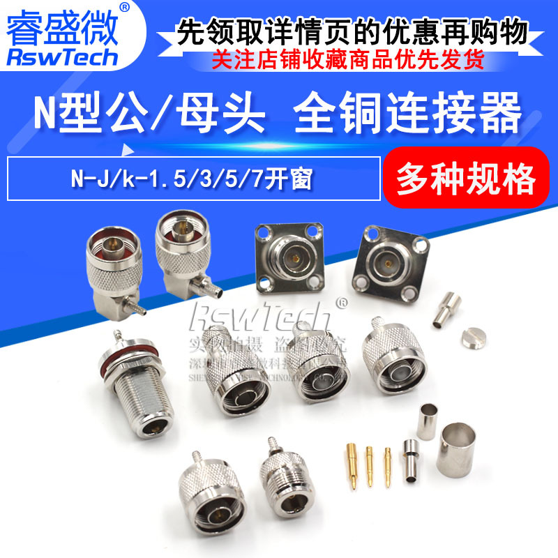 全銅コネクタN-J/k-1.5/3/5/7開窓n型オス/メス圧着rg316 rg174線