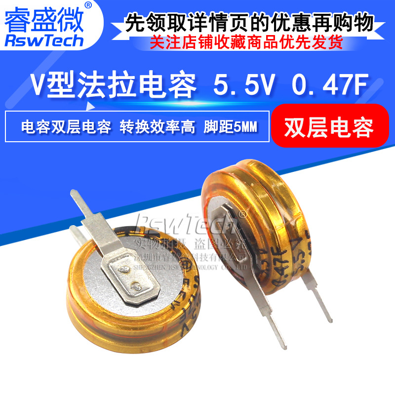 睿盛マイクロファラコンデンサ5.5v 0.47f v型スーパーコンデンサピッチ5mmファラコンデンサ