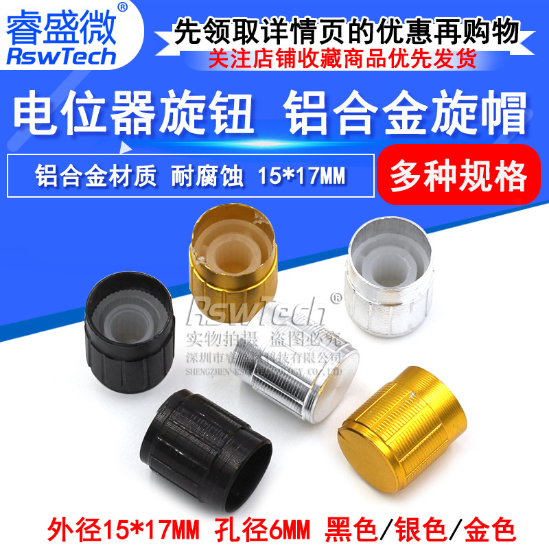 Ec11アルミニウム合金回転キャップ15x17mmマイクロスイッチ押しポテンショメータ回転キャップ穴6mmに適しています
