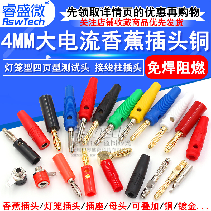 バナナプラグ4mmランタンヘッドテストプラグバナナ頭4ページ型ターミナルプラグ配線バナナタイプ