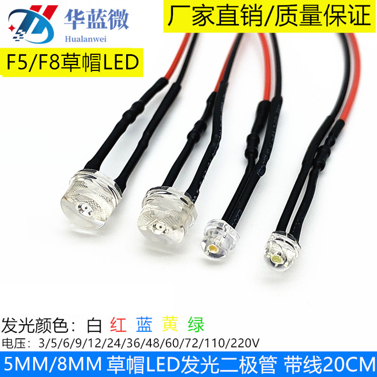 メーカー直販12v 5mm円頭灯珠帯線20cm led灯珠赤黄青緑白発光ダイオード