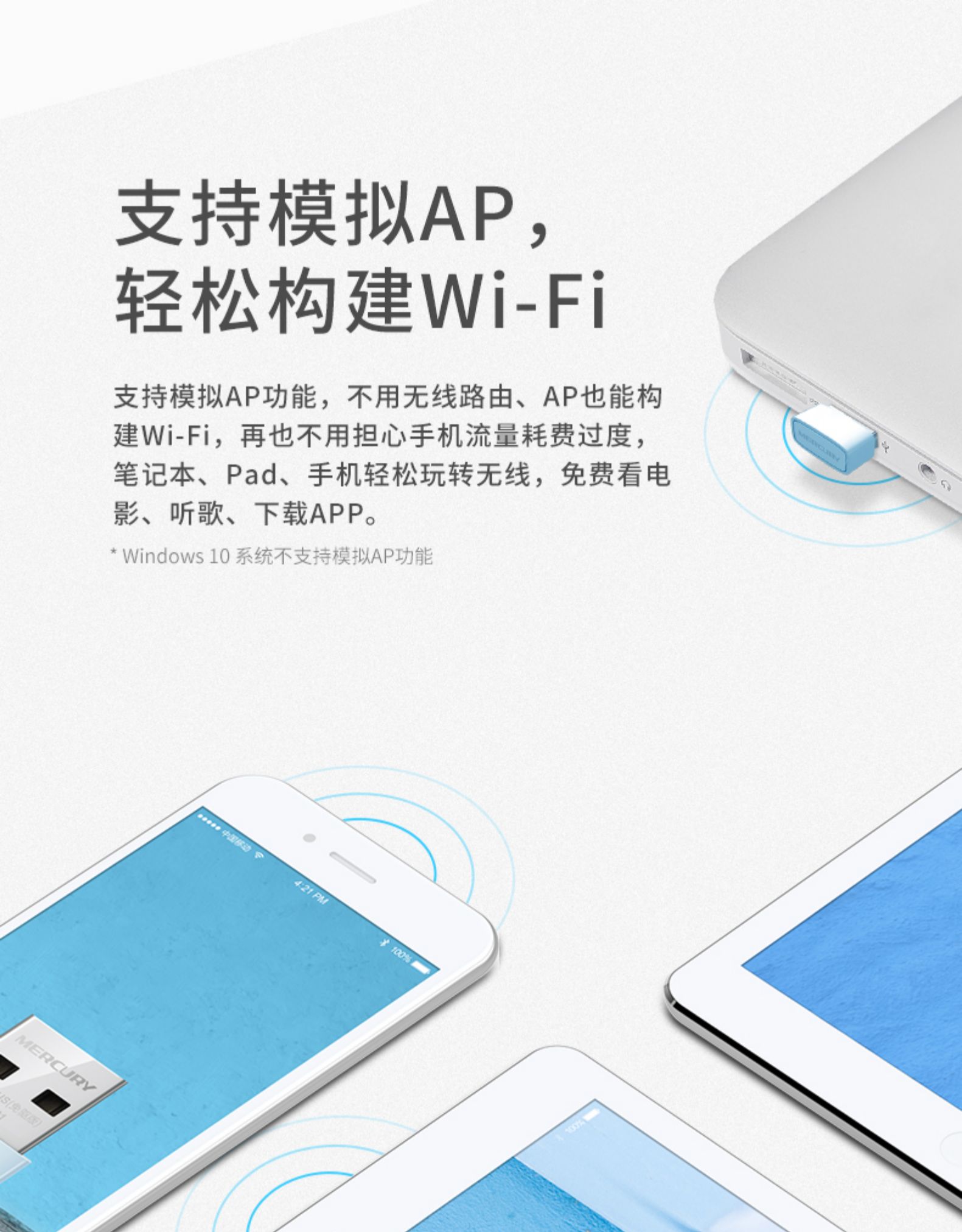 *Windows 10系统下目前暂不支持模拟AP功能