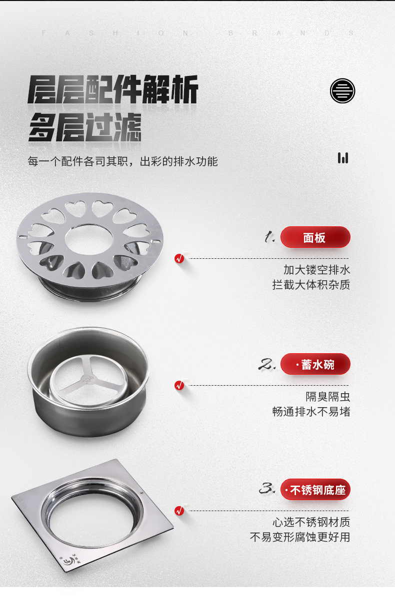 304ステンレス床漏れ2センチdn50トイレ浴室洗濯機両用バルコニー角形防臭床漏れメーカー