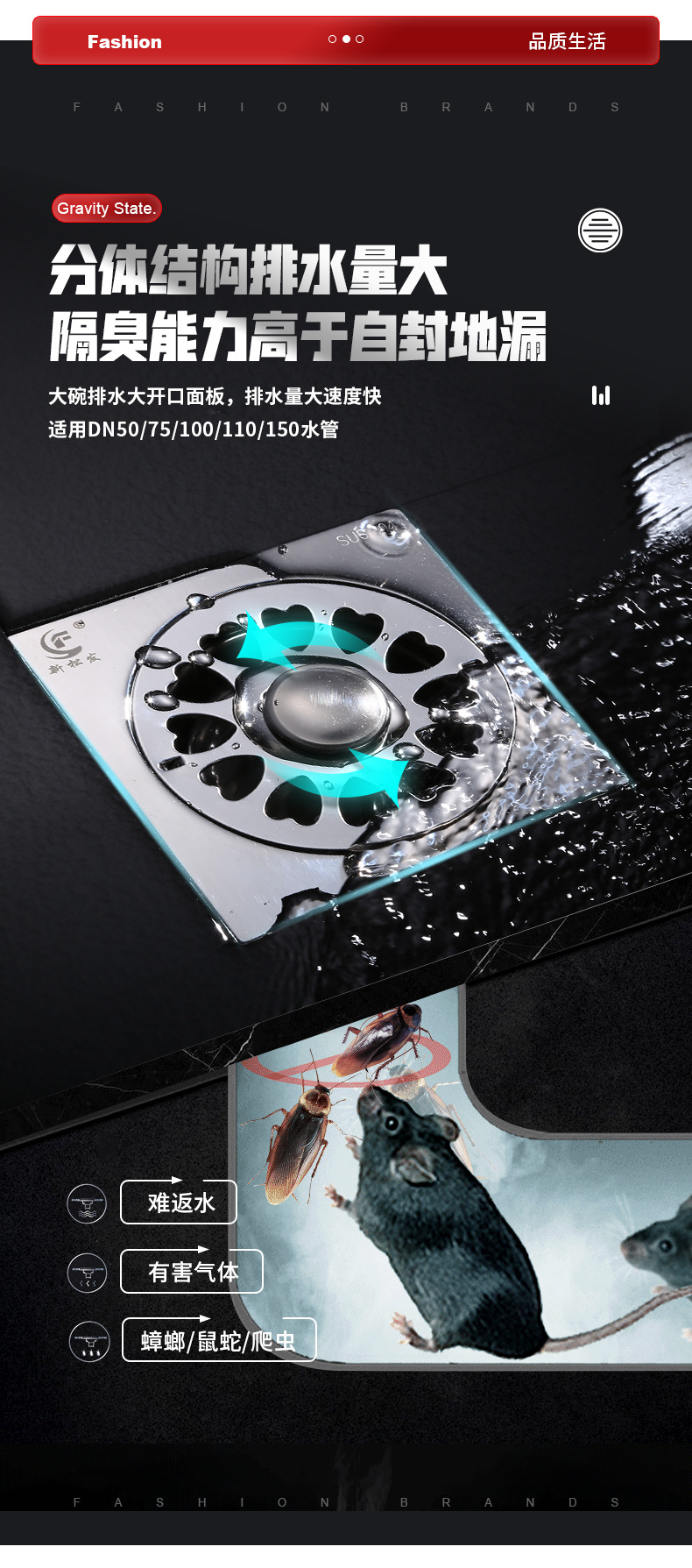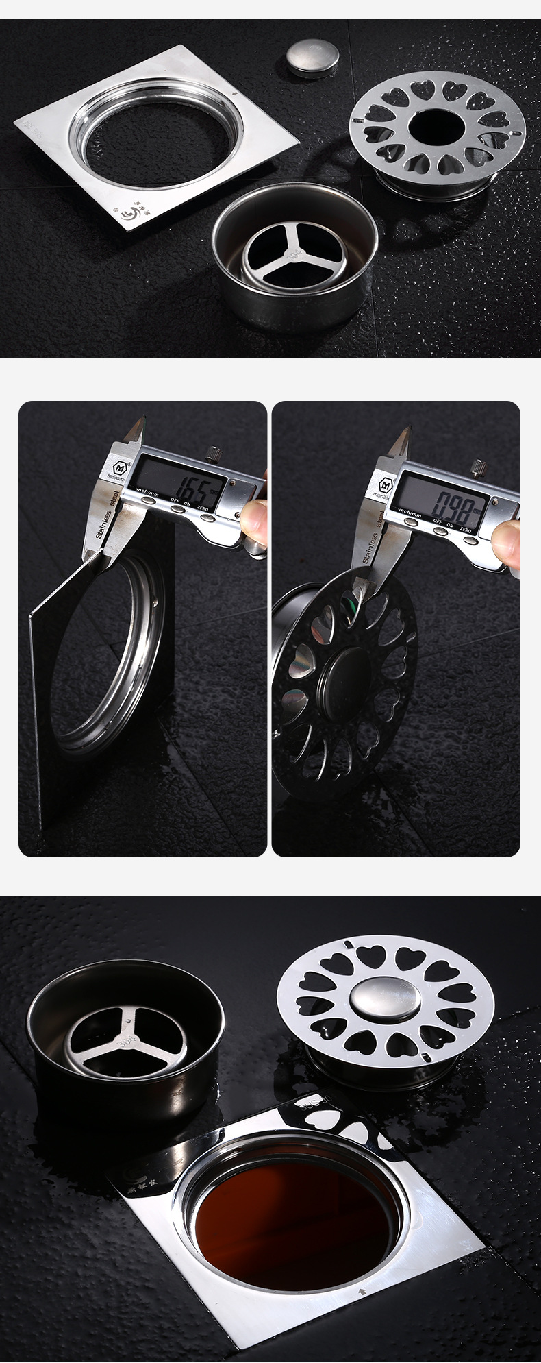 ステンレス製排水溝 DN50-75-110 浴室 バルコニー 洗濯機 家庭用 正方形 防臭排水溝 工業用