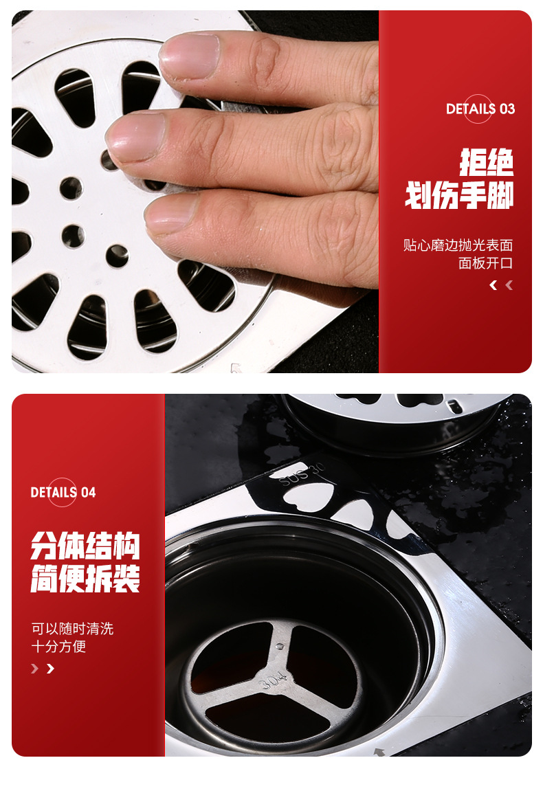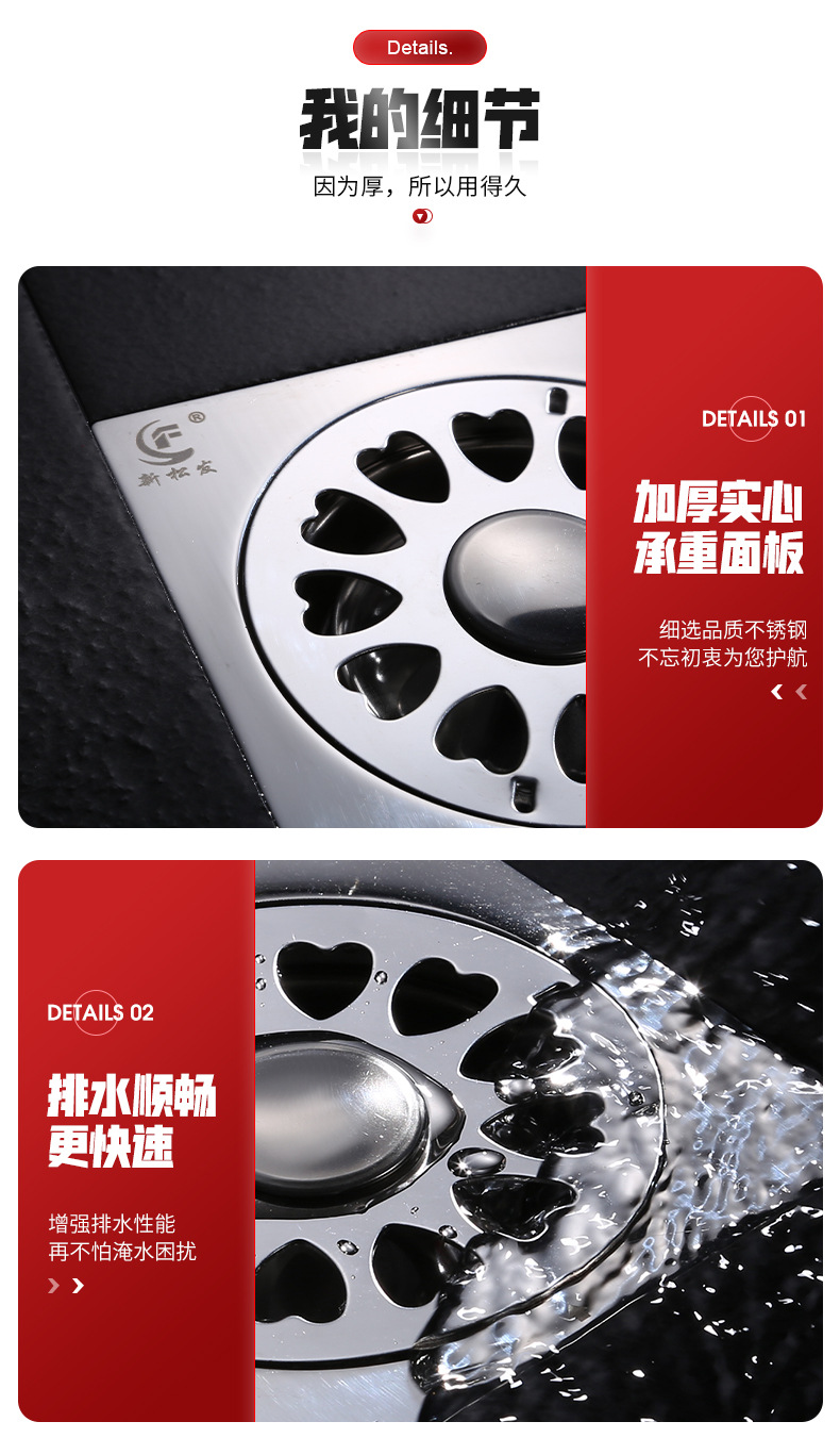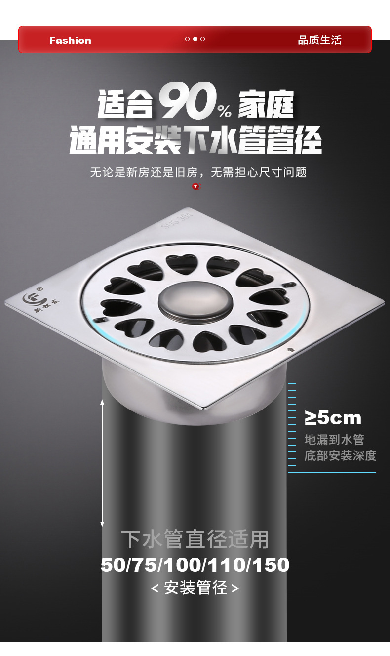 防臭304不锈钢地漏阳台卫生间厨房下水管淋浴房洗衣机工程款加厚