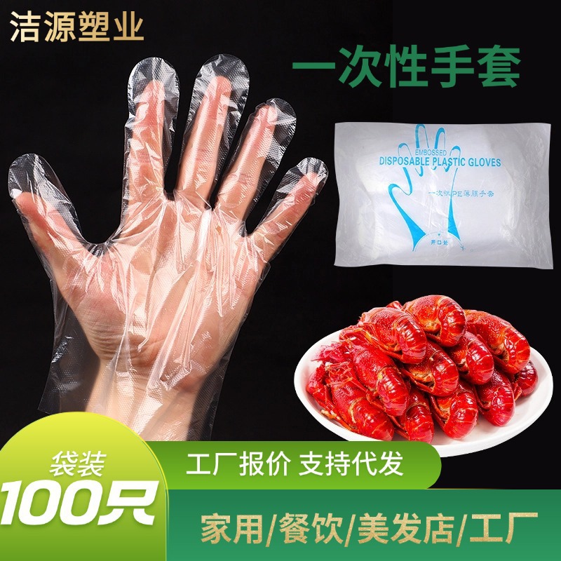 一次性手套食品用100只装餐饮塑料薄膜手套透明加厚烧烤外卖手套
