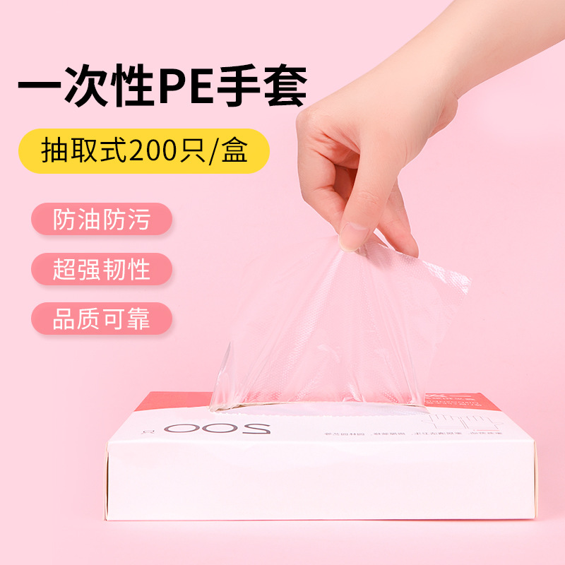 鑫義と使い捨て手袋pe食品級飲食厚透明フィルムキッチン家庭用ケース抽出式