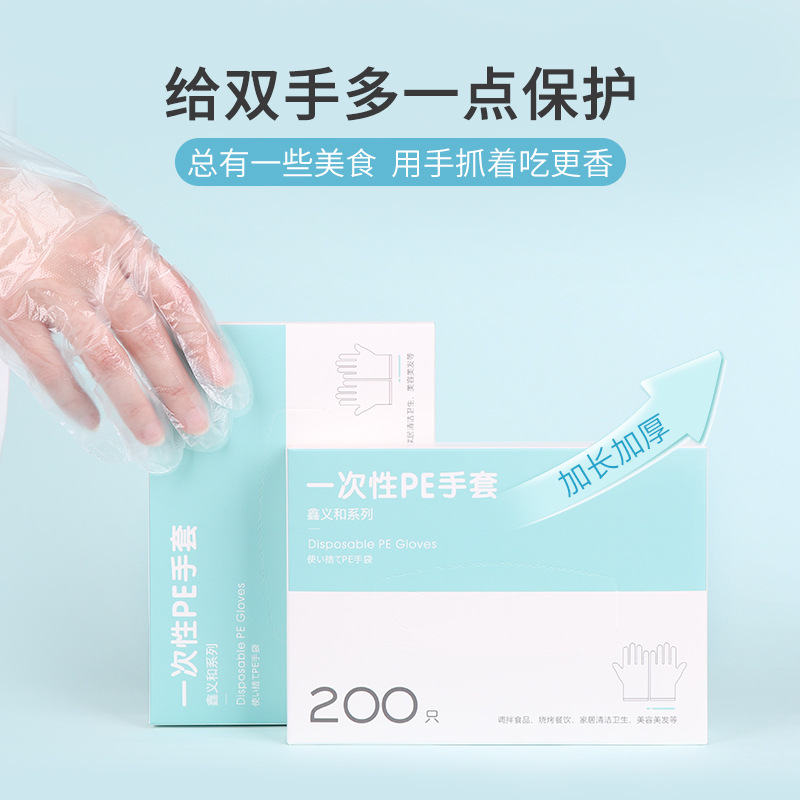 鑫义和一次性手套食品餐饮家用pe手套厨房用塑料透明防水薄膜手套