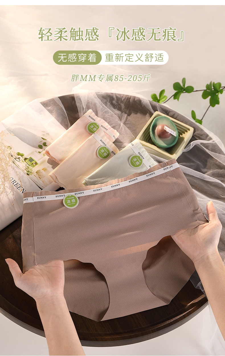 セクシーな蜜桃の大きいサイズの冷感アイス7a抗菌高腰無痕下着女性200斤運動はヒップパンツを挟まない