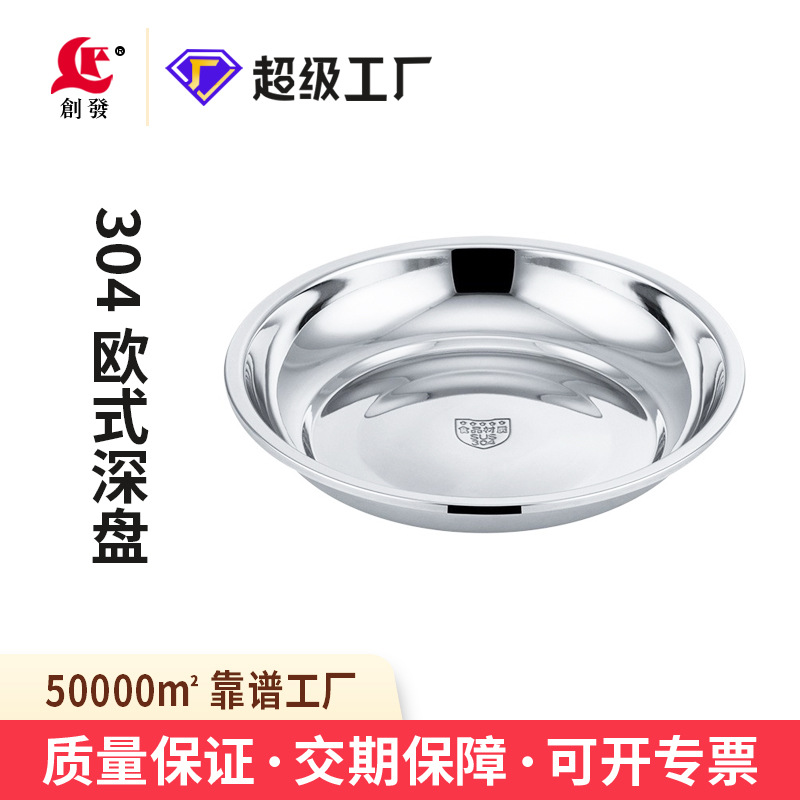 創發食品級304ステンレス鋼プレート、丸型食器、食堂多用途厚型バーベキュープレート、キッチン卸売