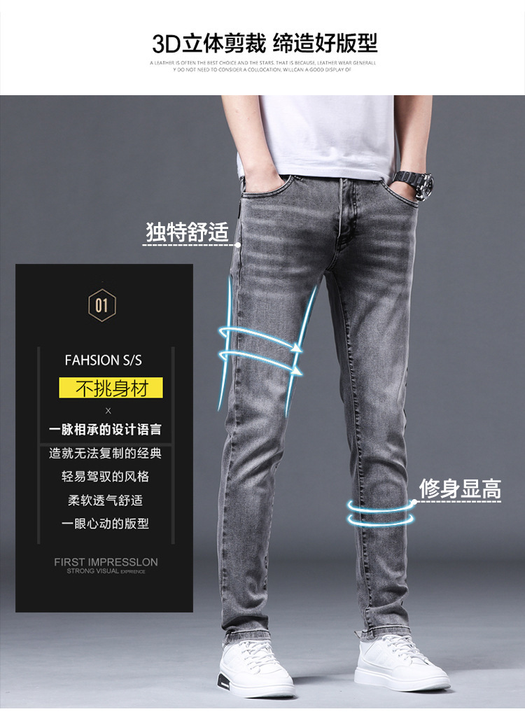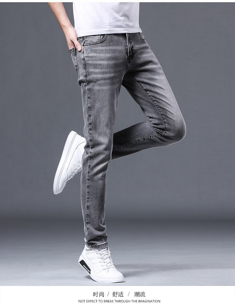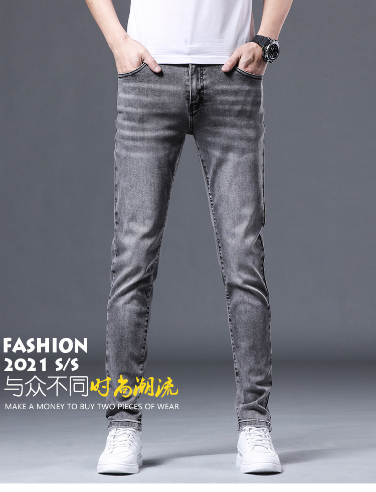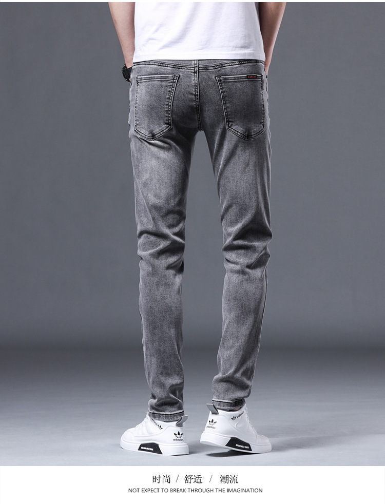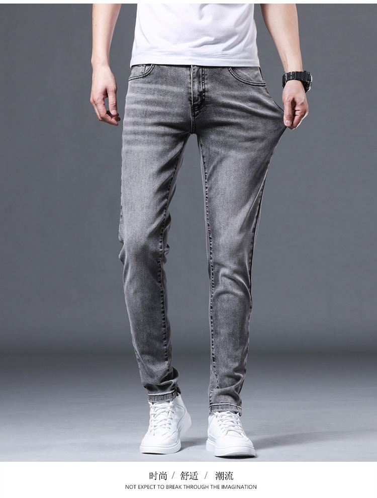夏の薄いタイプの男性のジーパンは小さい足の弾力性のズボンの男性の韓国版の潮流の青年のズボンを修理します。