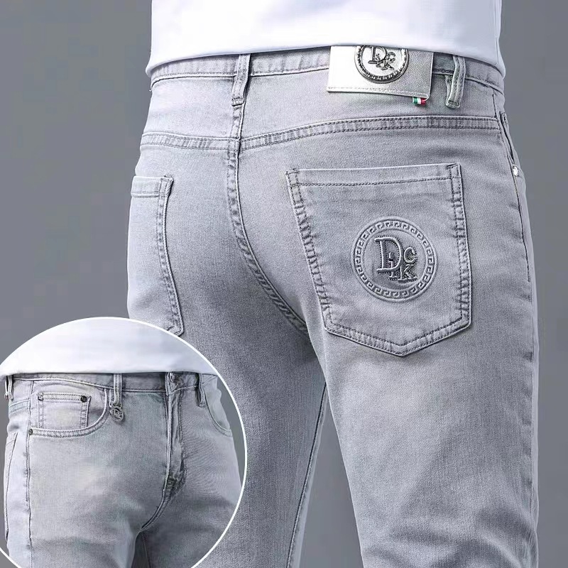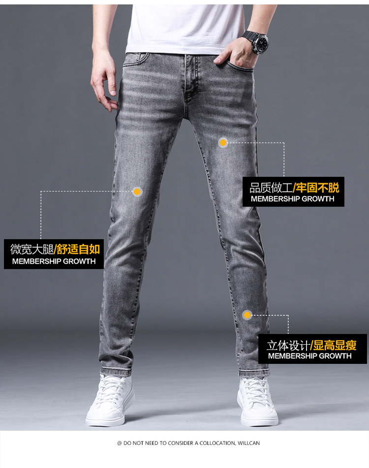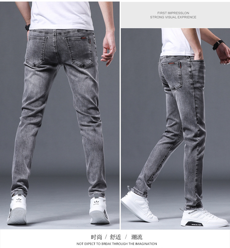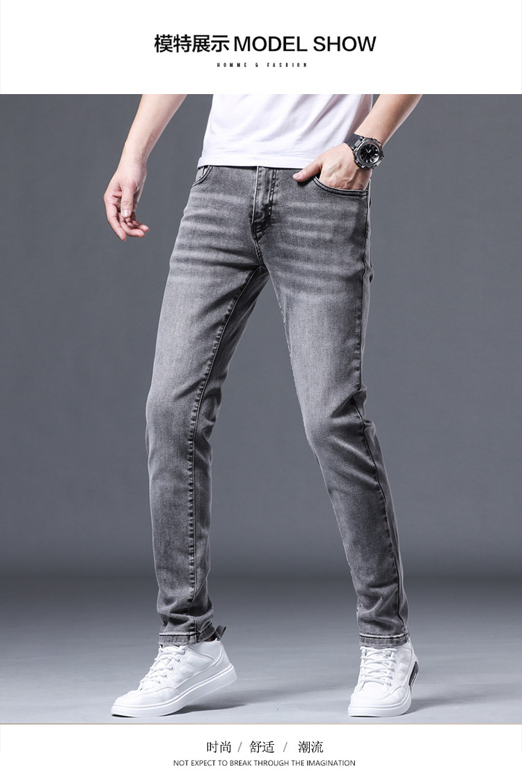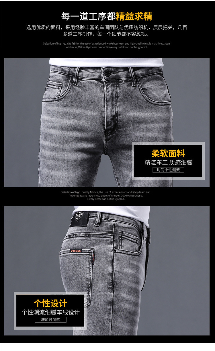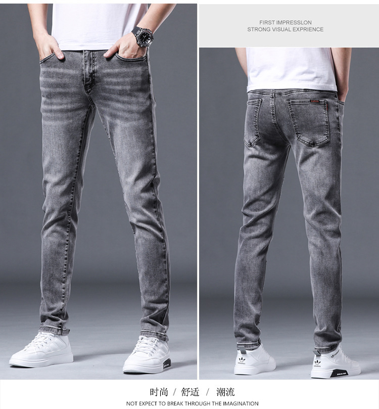 元のメーカーはヨーロッパ版の軽い豪華なファッションブランドの弾力性の小さい足のデニムのズボンの薄い金の修身の灰色の男性のズボンを代行します。