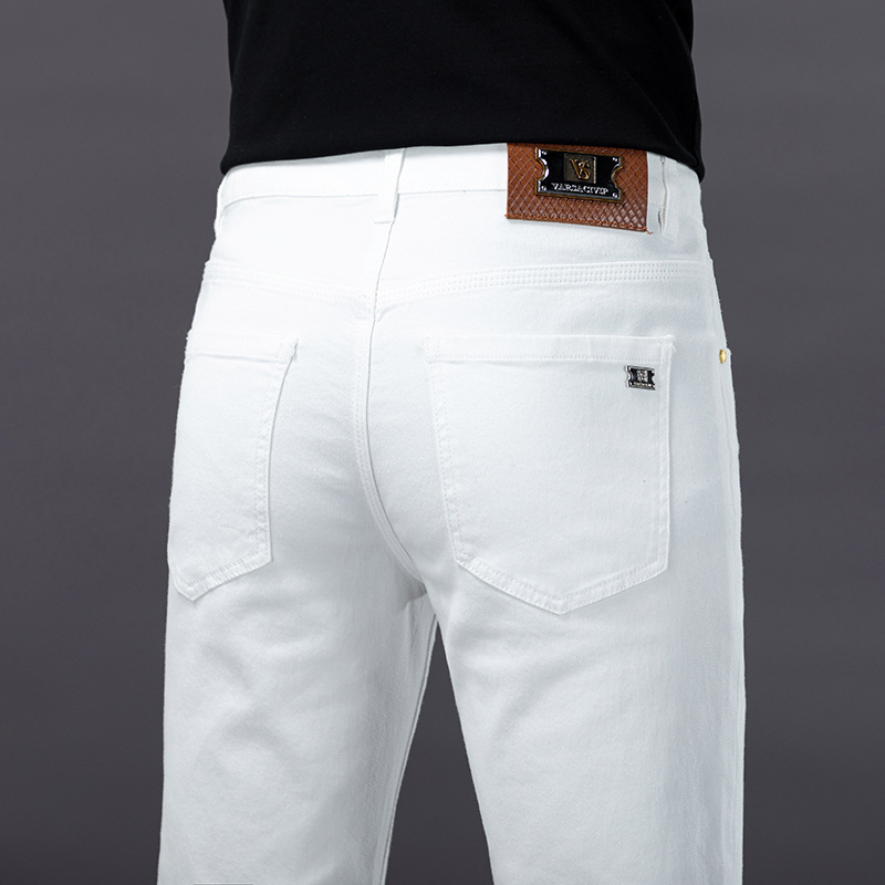 欧米の高級ファッションブランドの白いジーパンの男性の春と夏の新型の修身の小さい足の弾力性のファッションのカジュアルな男性のズボン