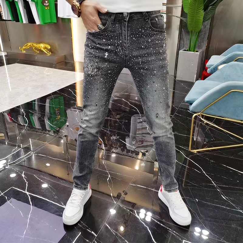 欧洲站牛仔裤青年男士2025秋冬新款潮流烫钻弹力修身百搭小脚长裤