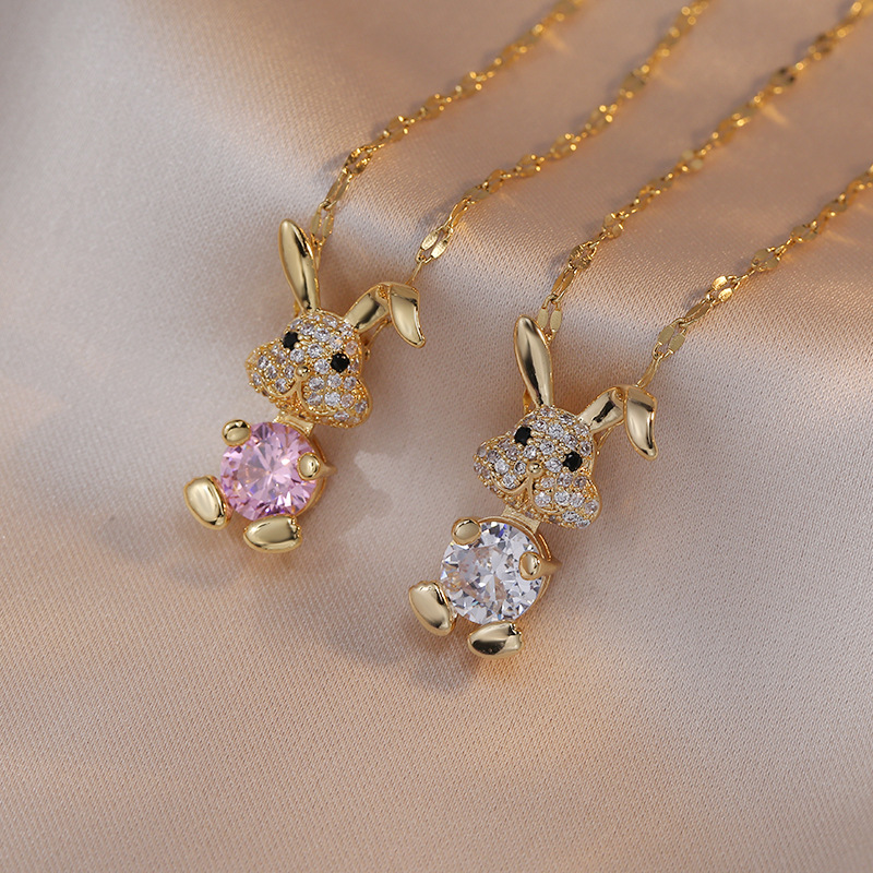 ネックレスの女性のネットの赤い甘いウサギのジルコンの小さい大衆の軽い豪華な新型のデザイン感のフラッシュドリルのペンダントの気質のチタンの鋼のネックレス