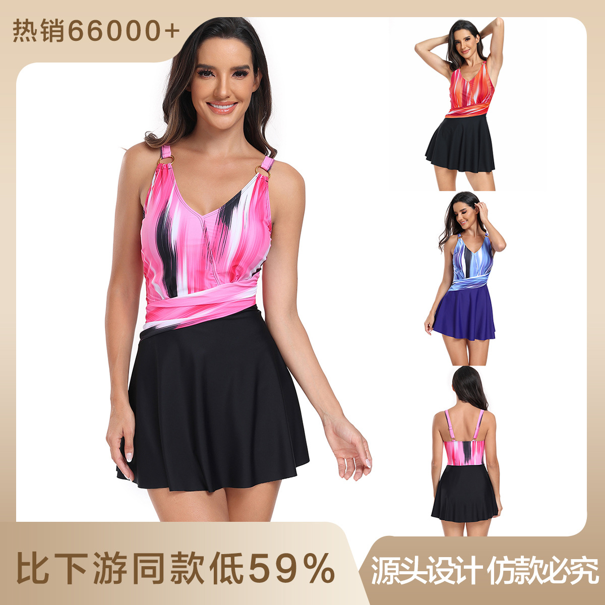 2025新型ワンピース水着女性温泉欧米アマゾン国境を越えたスポーツスカート式保守的な大型水着卸売り